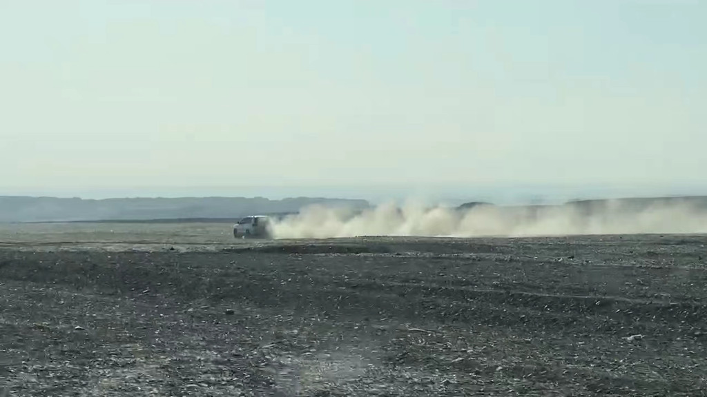 在大海道无人区,目之所及皆是戈壁,茫茫沙土,一条笔直的沙土路直插前方,小伙伴们嗨起来了,在无垠的戈壁滩上狂奔,车后卷起来滚滚尘沙。