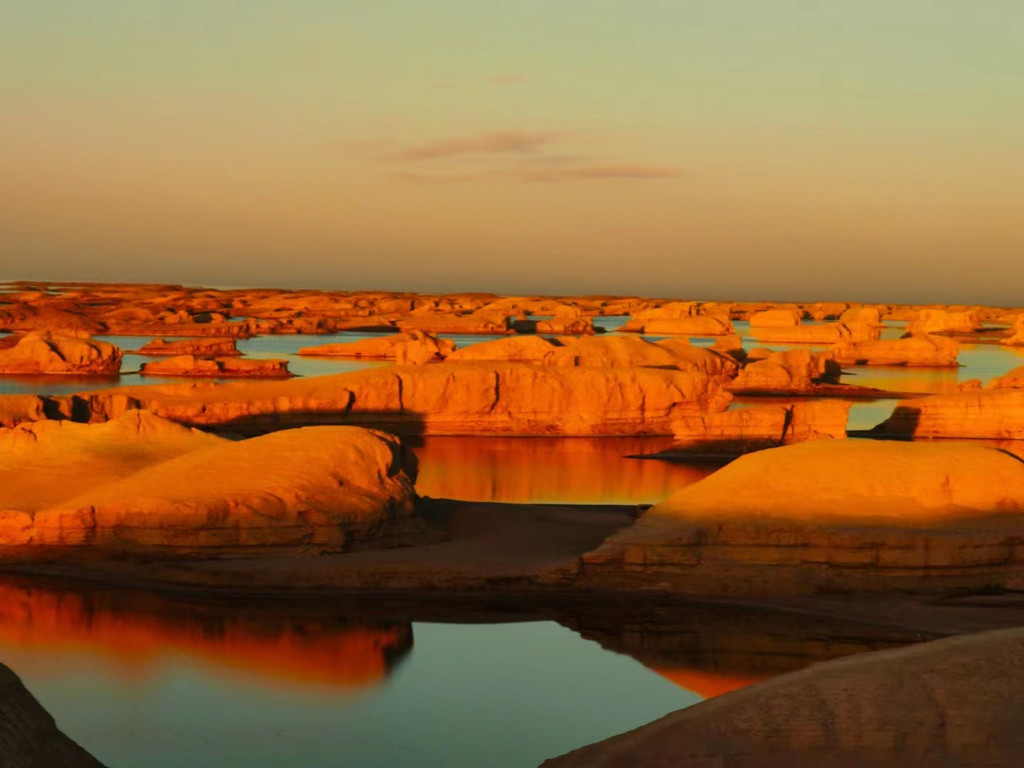 乌素特水上雅丹因为吉乃尔湖面的抬升,淹没了雅丹群,才形成了独特的水上雅丹,魔幻而神秘。