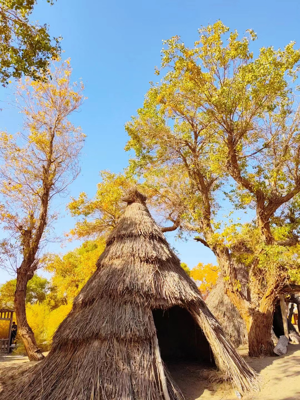 小伙伴们乘坐区间车进入村寨,一路可以看到很多高大的胡杨树,参观了罗布人的房屋、婚房、祭台等等极具特色的建筑,了解罗布人的特别民俗,还有当地的罗布人歌舞表演等可以观看。罗布人做的烤鱼非常有特色,味道也很棒。