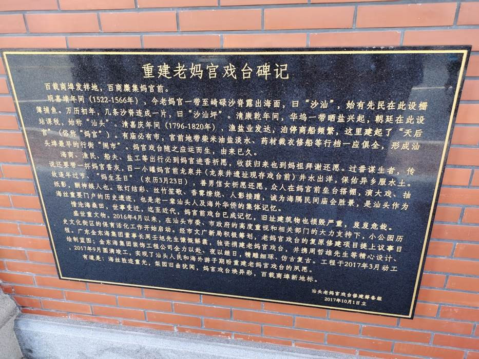 在这里看到了一个戏台,可惜里面并没有开设。看到了一个石碑,上面有写重建戏台的事情。