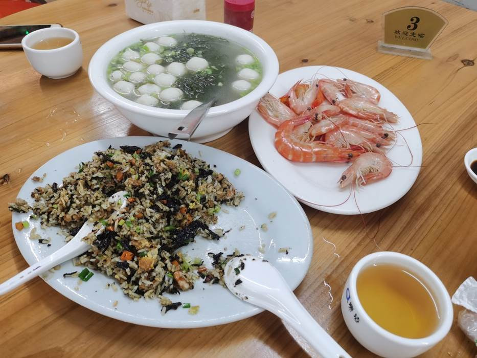 晚上去吃了许大姐的菜。店里人特别多。我们吃了炒米饭,还有烙饼之类的,性价比很高。