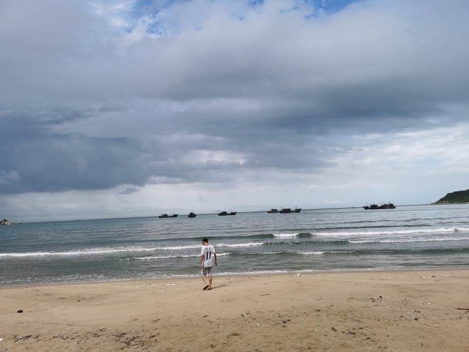 海边人也不多。绵长的海岸线上特别适合放松。沙子比较大,走路的时候可能会硌脚,建议穿着沙滩鞋过来,尽量不要光着脚丫了。