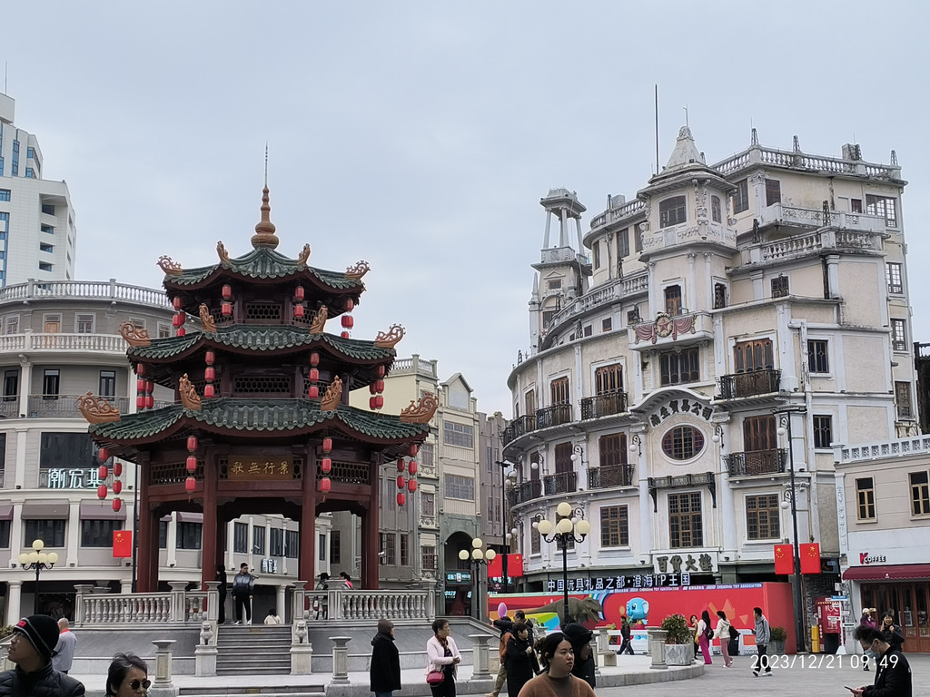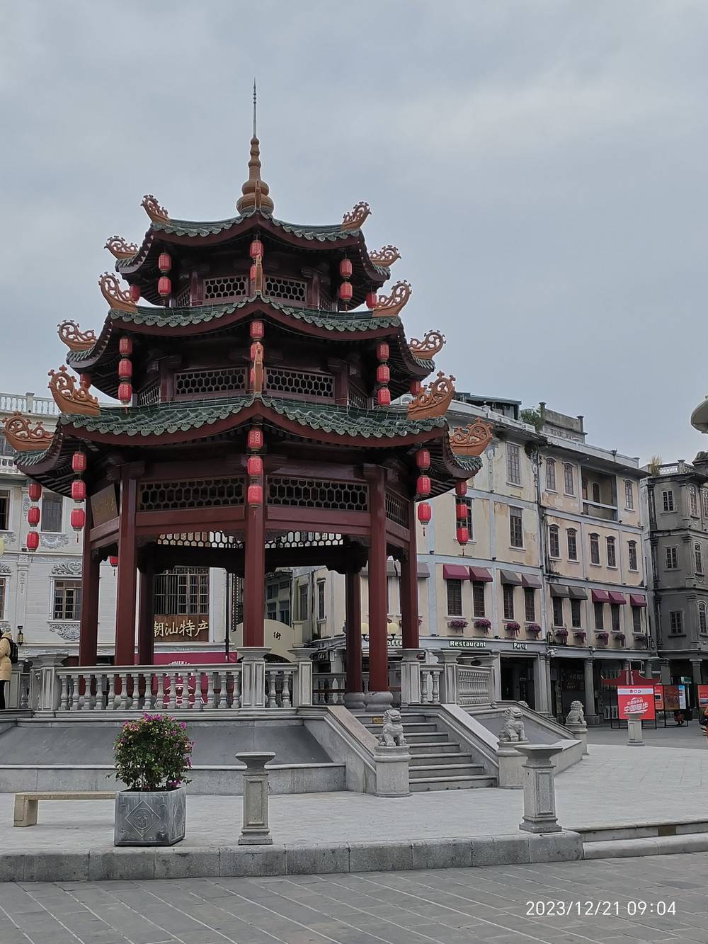 小花园,我这天早上走访后刚明白,它不是老头老太扎堆聊天或广场舞的休闲公园,而是以一座中国风孙中山纪念亭为核心,并向周边辐射出几条骑楼街的街区。