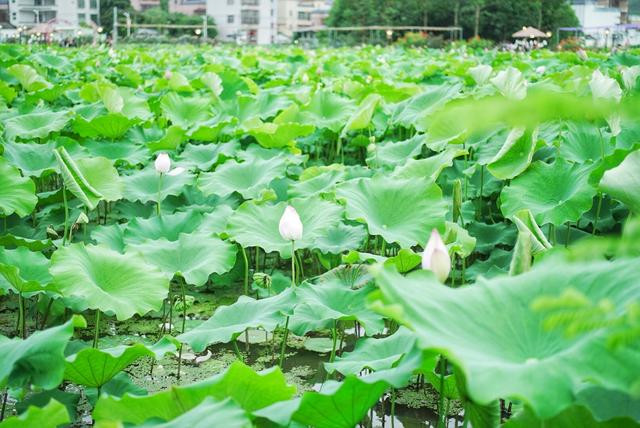 如果想要近距离观赏荷花的话,可以往游览栈道行走,一路通往荷塘中央,看着两边荷花飘香,被满满的荷叶捅簇着的感觉。