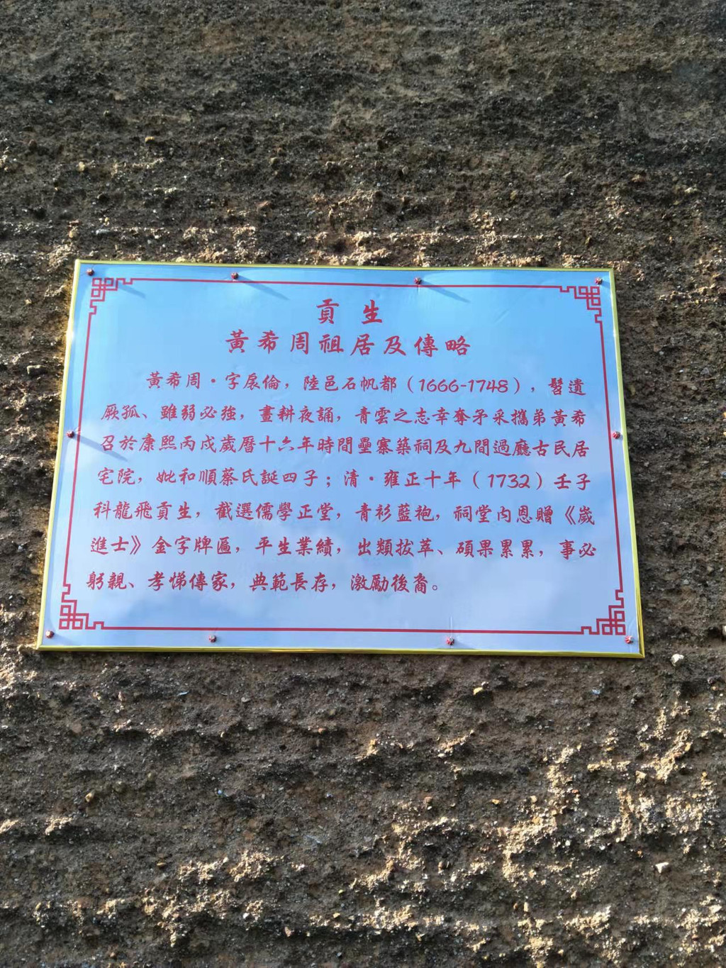 黄希召. 字殷睦 石帆都 (1671—1748),清乾隆九年(1744)甲子科贡生贡仕,候选儒学正堂。(注:恩赐“殷睦号” 体积容器誉显石帆都)。