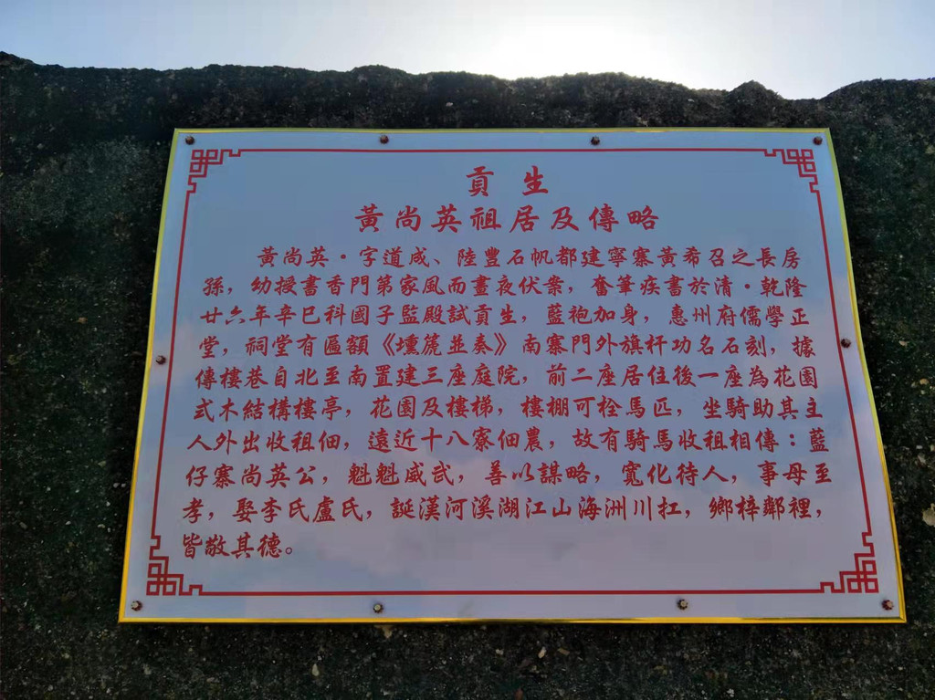 在全国文物普查中“建宁寨 黄氏家祠”于2017年秋荣获,陆丰市文化广电新闻出版局 指定为不可移动文物保护单位,并授予挂牌仪式。