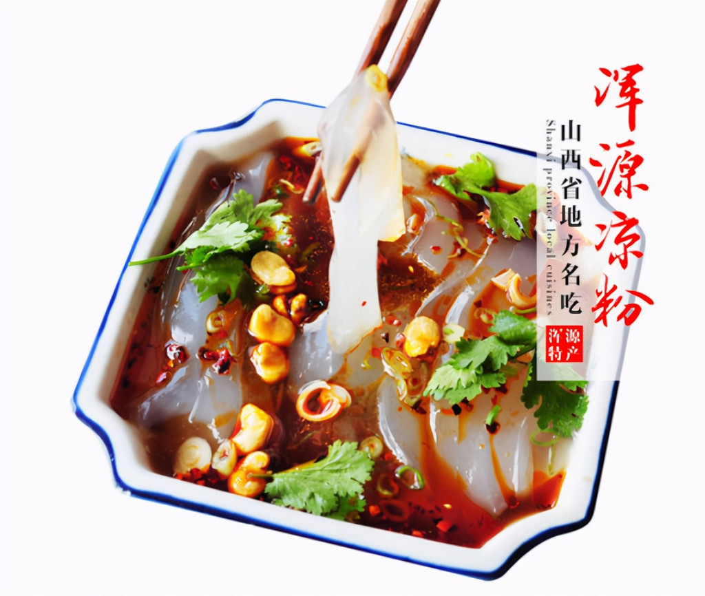 浑源凉粉,是大同市浑源县的特色小吃,浑源凉粉有着数百年的历史,现已被列入山西省非物质文化遗产名录,浑源凉粉以土豆淀粉、蚕豆为原料制作而成,浑源凉粉成品似猪皮冻“筋颤”,拿在手上“滑溜溜”,吃在嘴里“凉丝丝”,浑源凉粉非常爽口、滑嫩,配合蚕豆的酥脆,风味独特。
