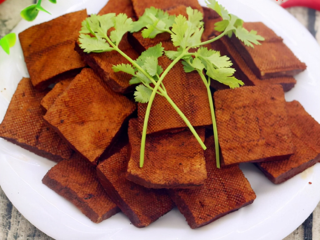寿阳豆腐干,山西省寿阳县特产,中国国家地理标志产品。寿阳豆腐干采用当地产优质大青豆制成,寿阳的大青豆富含蛋白质和维生素等营养成分,经过独特的工艺精制成豆腐干,低糖、微咸,口感细腻,味感清香。寿阳豆腐干形状平整,外观为褐红色,内则是金黄色,口感非常的紧实,重要的是没有豆腥味,咬上一口,让人非常满足。