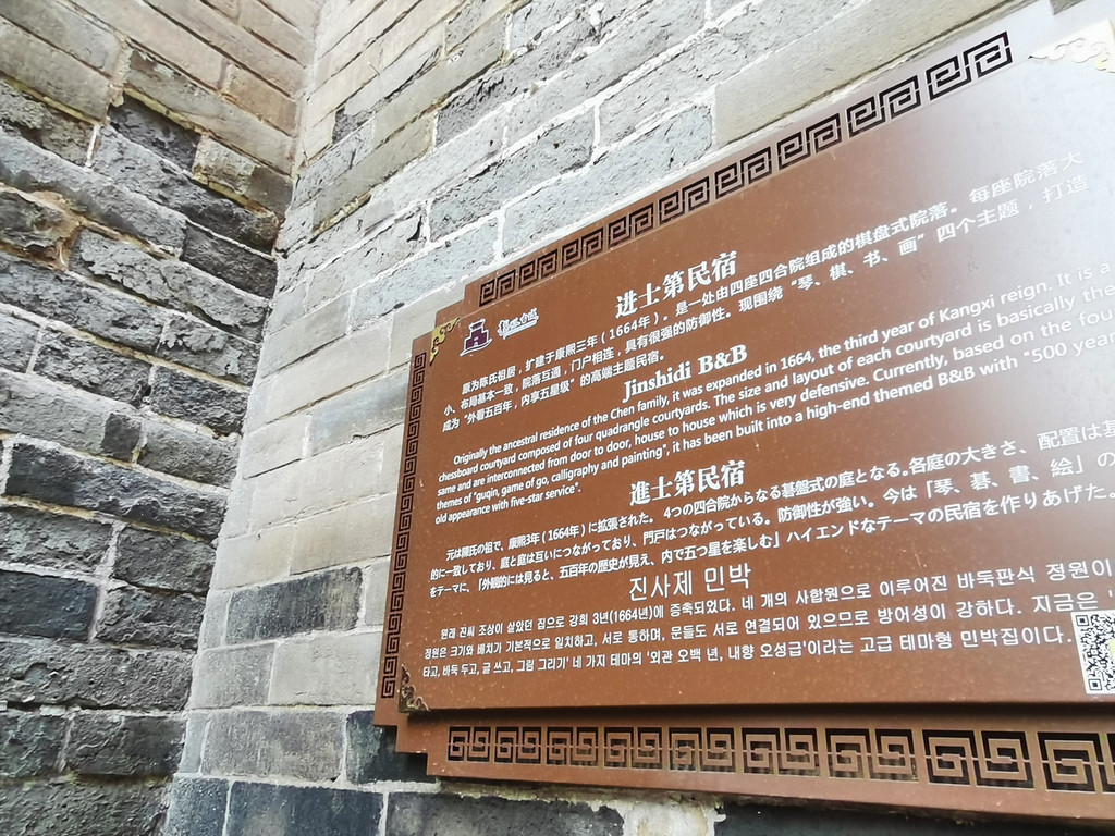 陈氏故居,扩建于康熙三年,现今改造为进士第民宿,围绕“琴棋书画”四个主题,打造成为“外看五百年,内享五星级”的高端民宿。