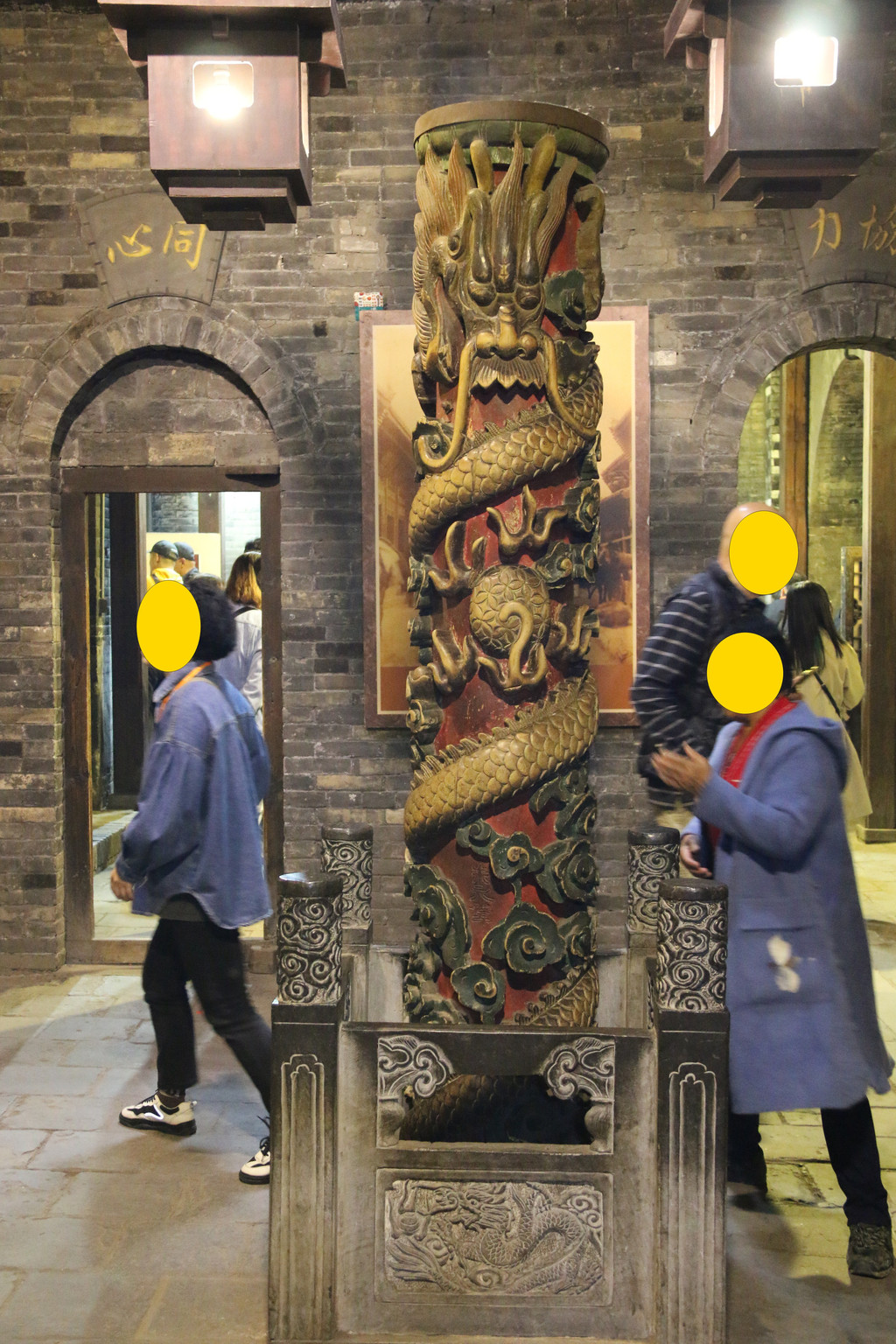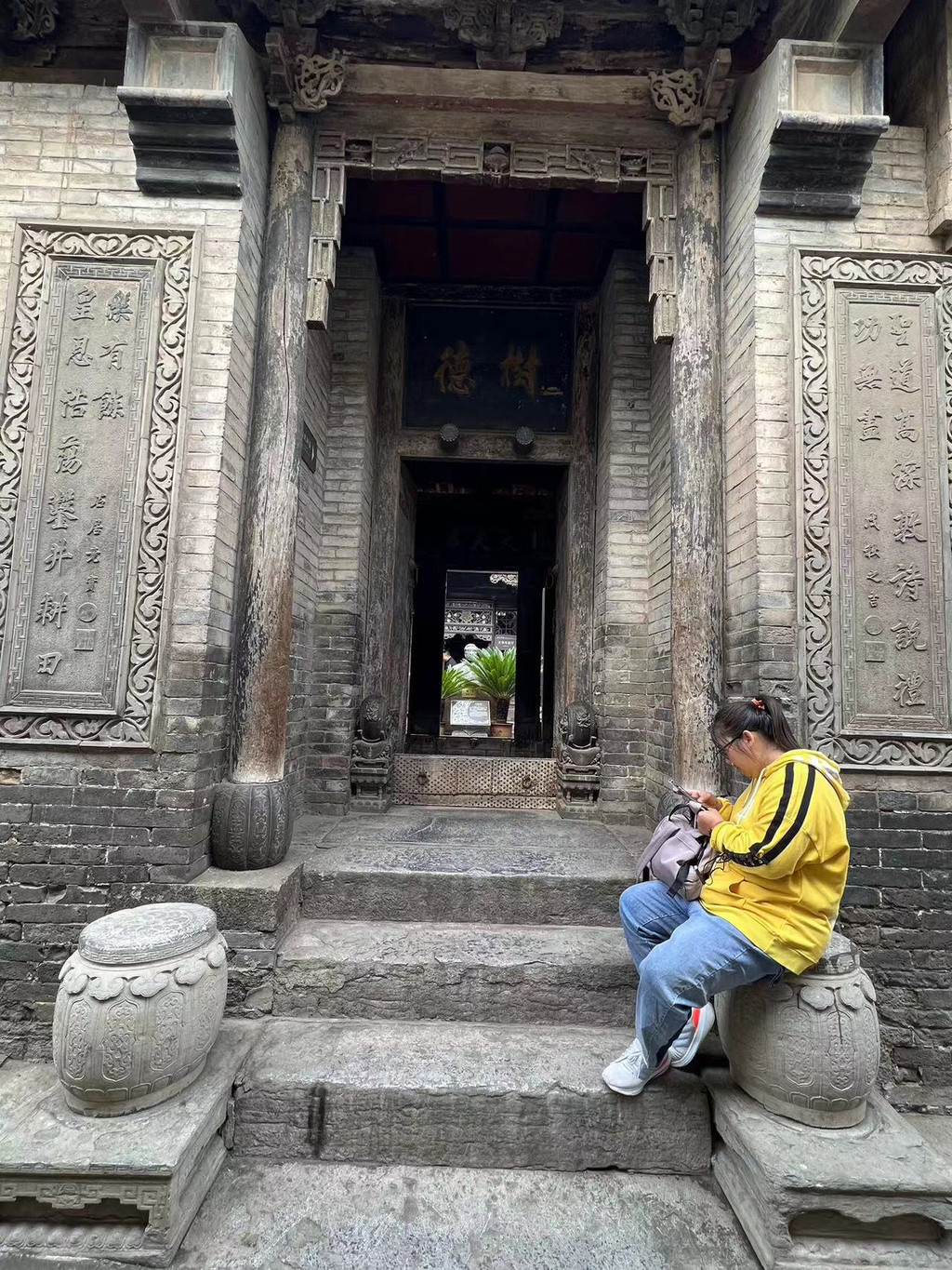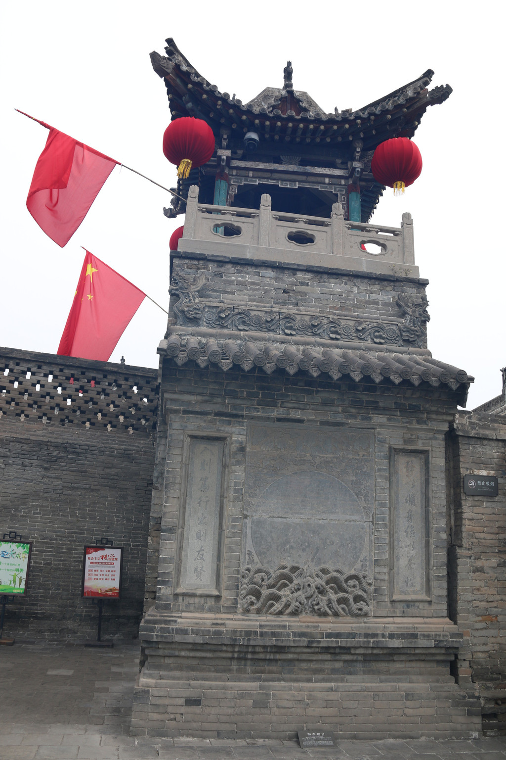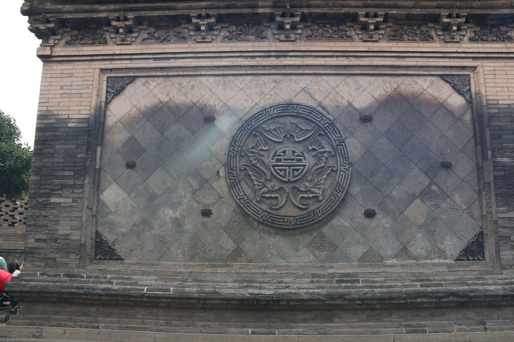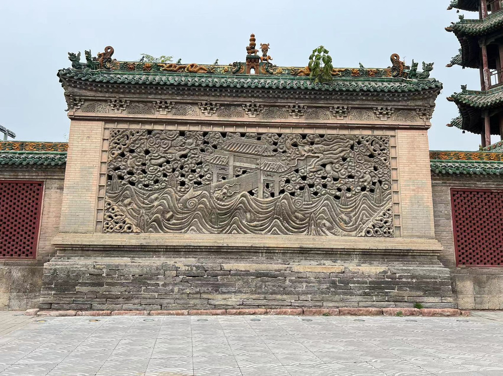 继续往停车场走,路过静升文庙,下面是被称为"天下第一壁"的双面镂空石雕"鲤鱼跃龙门"照壁。