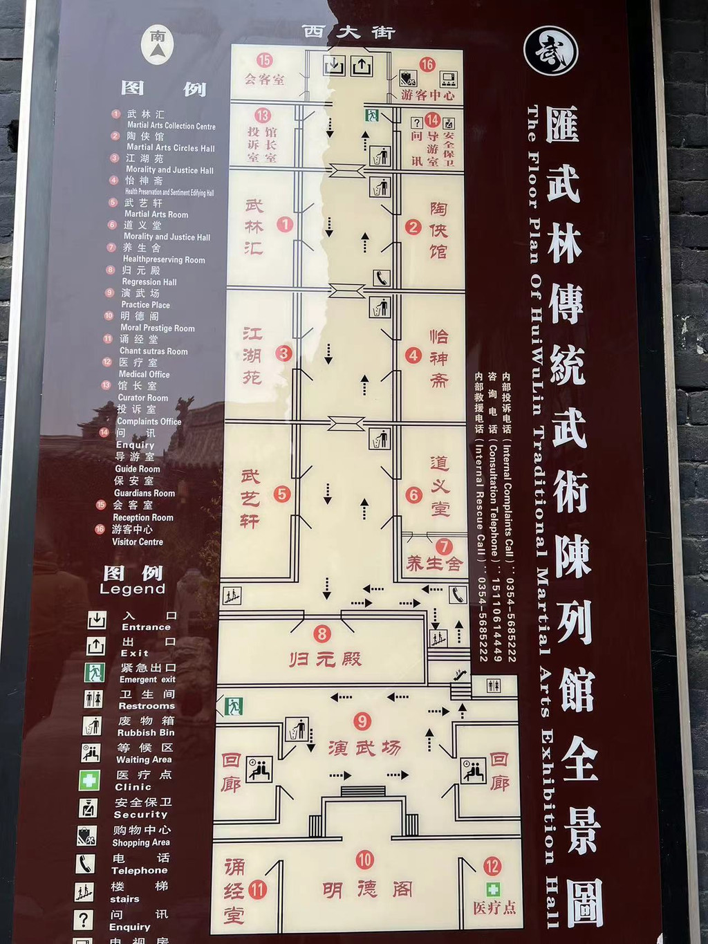 武馆坐北朝南,分前后两个部分,前面为陈列馆,共三进院落,后面是演武厅和习武场。