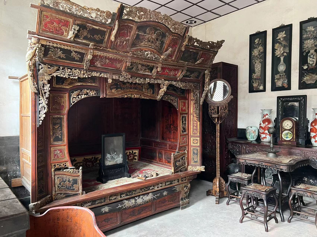第四进院落的东西两厢房为珍藏室,现展出有古代的家俱及巧夺天工的木艺工作流程。