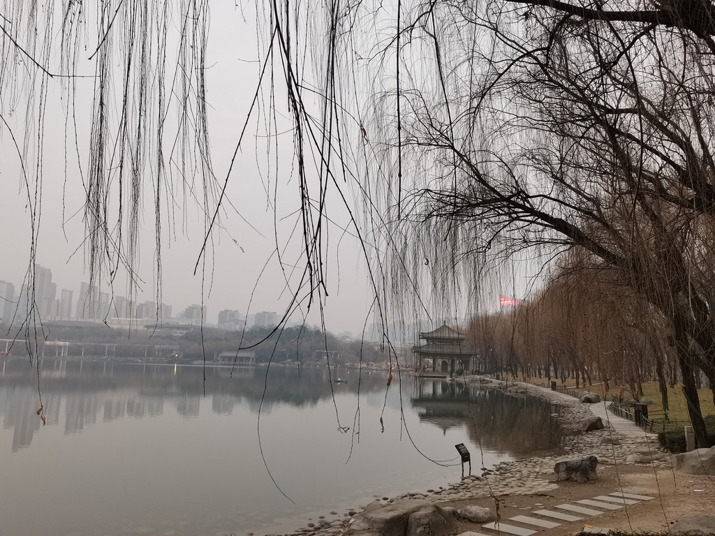 进入景区后,但见清波淼淼,寒烟袅远,岸边遍植垂柳,柳丝随风摇曳。正值深冬季节,林木萧索,待到阳春三月,花红柳绿,树木葱茏,繁花灿烂,那又是另外一番景象了。环顾四面,亭台楼阁点缀其间,星罗棋布,水楼之间,间或有小桥依势而建,虽地处繁华闹市中,尽显古朴雅韵。
