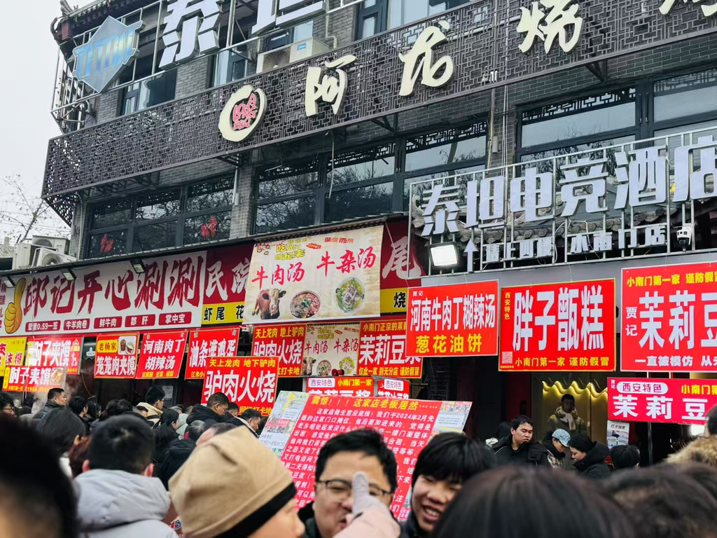 正月初三,8点多一点,当我们离早市还有几百米的时候早已看到人头攒动,待到跟前,只见人声鼎沸,来早市赶早的人将几百米的十字街早市围了个水泄不通。几乎每家店每个摊位前都挤满了人,店家的吆喝声、游客的呼朋引伴声此起彼伏,好不热闹!说来惭愧,笔者在西安呆过四年,这也是第一次春节赶早市,竟然被震撼了。