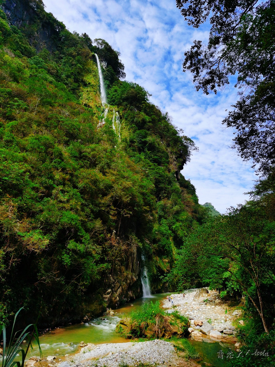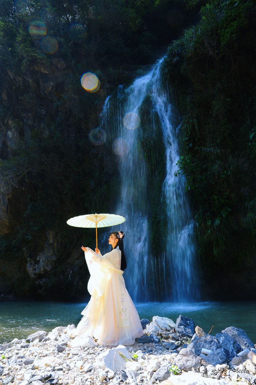 从悬崖上倾泻而下的瀑布很美,天气好的时候还会有彩虹,特别适合穿汉服来取景拍照。