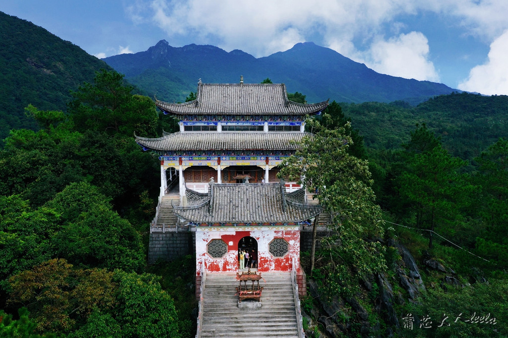 仙门右上方有座道观,即元妙道观(灵霄宝殿),就建在山峰之巅。元妙道观面积不大,走进山门就看到大殿,里面供奉道家三尊。