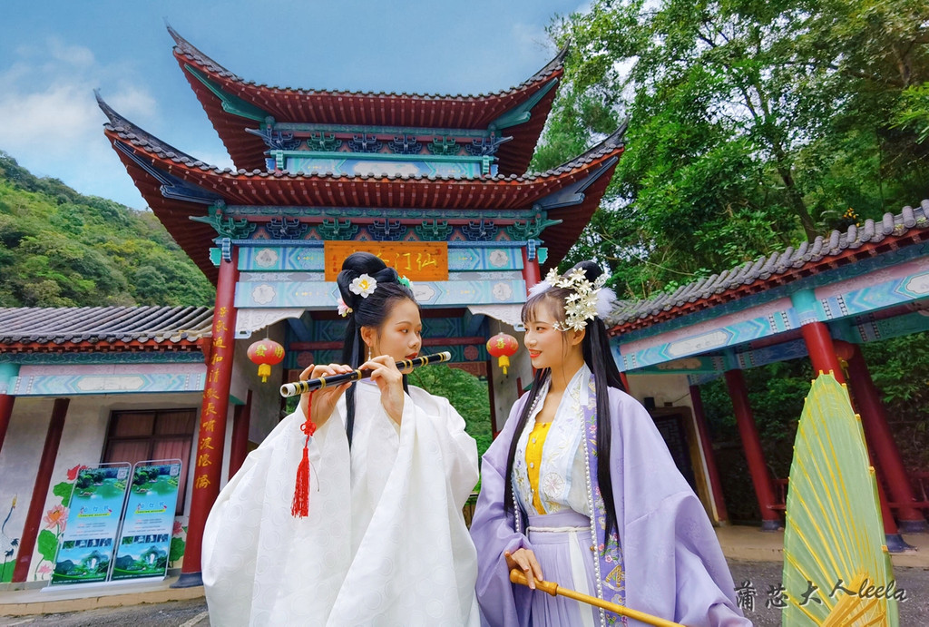 我们来到仙门的当天,看到汉服小姐姐正翩翩起舞,她的裙摆随风飘扬,美如天宫仙女,有种穿越回古代的错觉。