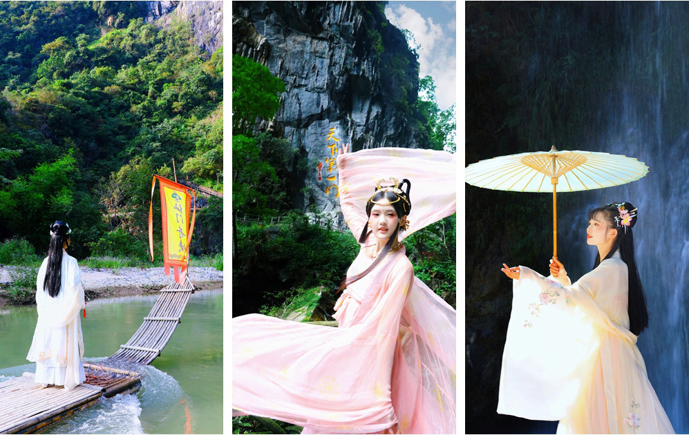 仙门奇峡位于韶关乳源瑶族自治县洛阳镇,距离广州3.5小时车程,这处人间仙境人少景美,最适合穿汉服来拍照。