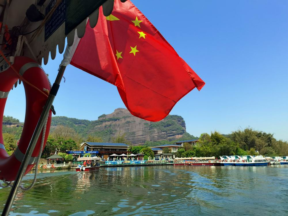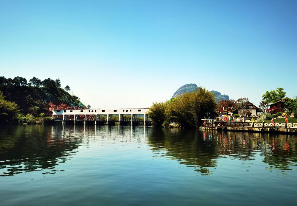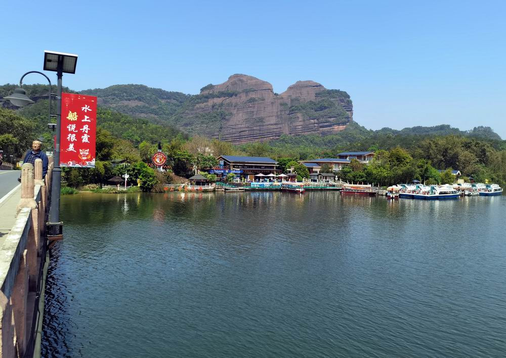 进入丹霞山景区,首先映入眼帘的是水上丹霞的游船码头。