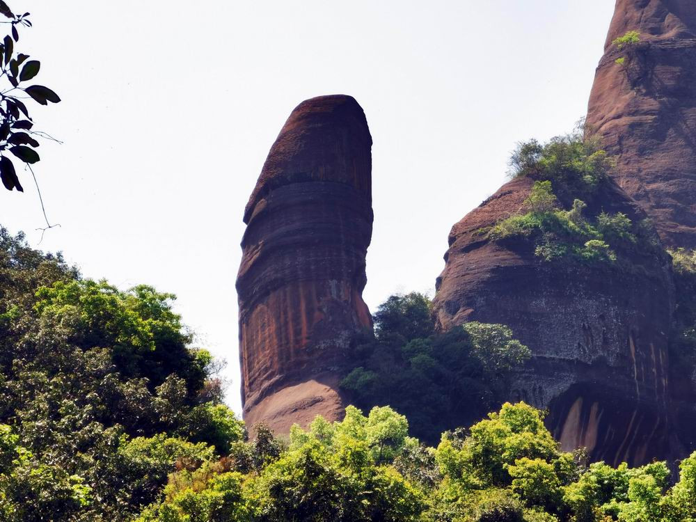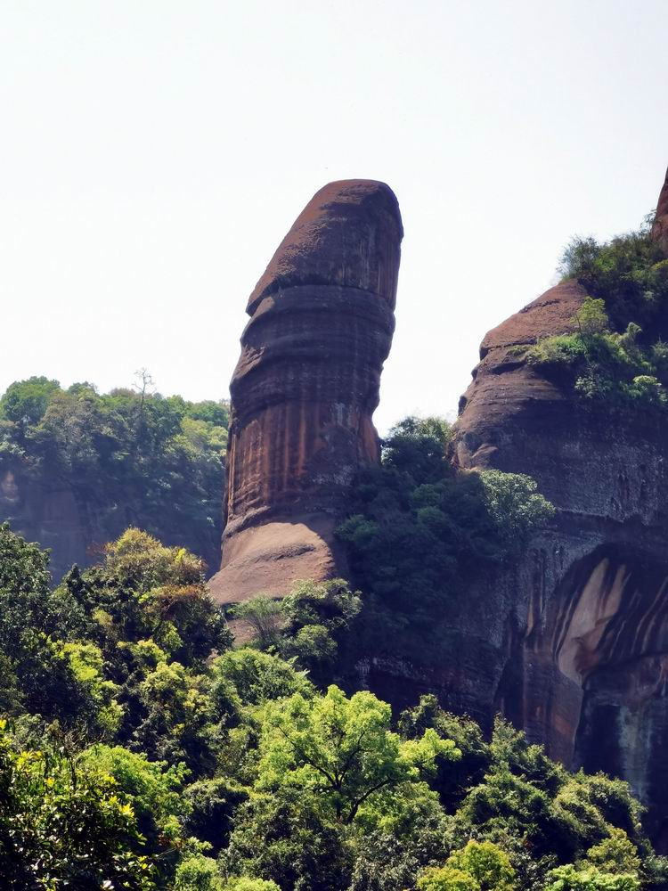 这个“阳元石”,就是世界自然遗产丹霞山的标志。这个观景台也是每个来丹霞山的游客必游之地。其实这根高28米,直径7米神奇无比的石柱,在丹霞地貌中属于石柱类型,是由于风化的作用从石山上分离出来而形成的。