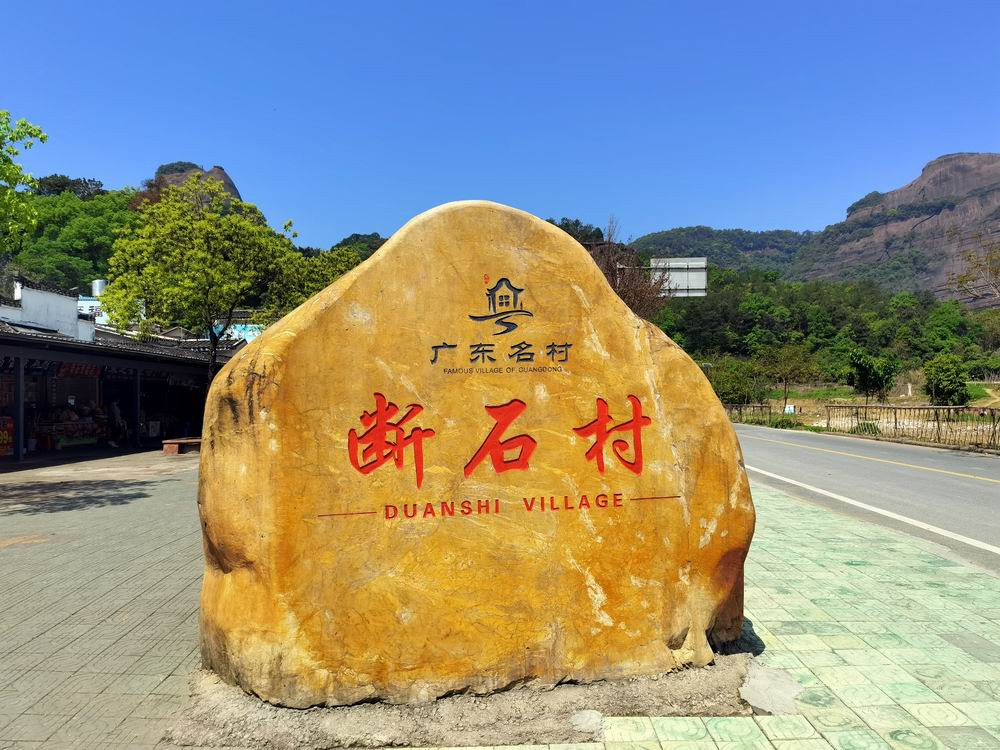 阳元石下的断石村,全村男丁旺盛,据考证全村生男孩的比例达75%以上,生双胞胎的10%以上,又名“多仔村”。图为断石村的标志石碑。