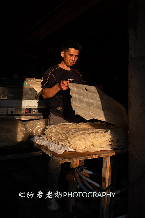 “中心围”的住户全部迁走了,多了一份冷酷庄严,少了点人气。它的左边是“上新围”,右边是“下新围”,都住有人家,虽略显杂乱,但显得更真实、更有生机。“上新围”里,走地鸡悠闲地在院子里觅食,丝毫不惧游客的来来往往,住家也都早已习惯了我们不请自来的拜访。有家卖“宰相粉”的小店,店里堆着一沓还没切的粉皮,进去跟老板攀谈起来,官先生也是满堂大围的后人,是“官”姓的后代,他卖的“宰相粉”也是清化粉的一种,因为唐朝的宰相张九龄老家就在隘子镇,故而叫“宰相粉”。“下新围”里也有卖清化粉的店,还有小吃店吃清化粉。拍摄时遇到一位满堂围老住家,正在洗菜做晚饭,我边拍边与他聊天,他说他家祖辈一直都住在“下新围”。天黑时才离开满堂大围,开车半个小时去隘子镇井下村,因为那里也有真温泉。