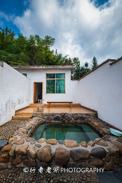 到了井下村,先去了“清化温泉”,有温泉,但没有住宿了,老板指点我去到不远处的“井下温泉”,有住房,也有温泉。晚上,老板的儿子小华用肉丝炒清化粉,粉丝润滑而有嚼劲,果然好吃。看到一大帮人在自己做饭,小华说是广州自驾来的一帮人客人,要住一周,他们自己做饭吃,还在这里买了肉,自己腌制腊肉晒在院子里。饭后去村里散步,发现不少人拿着衣服和浴巾走去同一个地方,我猜测就是去公共温泉。尾随而至,果然没错,公共温泉叫“华屋温泉”,是抗日战争时期抗日名将华振中将军出资兴建的,1983年拆除重修。回到井下温泉,我们房间虽然有木桶可泡温泉,想去看看他家的公共温泉,走过一个小山转到后院,除了小温泉池,还有一个大温泉池,竟然是一个标准的游泳池,爱游泳的我正好畅游了一番。