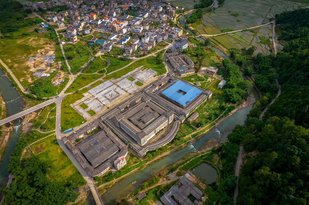 这是我第一次见到如此壮观的客家大围,这一栋栋围屋坐落在在茫茫田野上,构成了一幅充满客家风情的田园画卷,一座又一座气势雄伟的碉堡式古围,它们稳稳屹立于山水之间,青砖砌成的外墙光从外表就能看出它的坚硬,了解了这些围屋后,才知道它们是为了保民蓄财,防范外人入侵才把房屋修建成这个样子的。