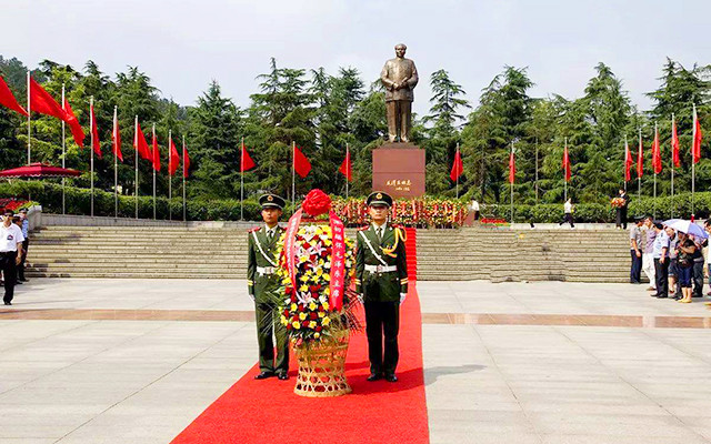 之后前往【铜像广场】,毛泽东铜像广场位于湖南省湘潭县,坐落在毛泽东纪念馆和毛氏宗祠前的开阔地带。周围青松翠竹掩映,群山拱护。铜像身躯高大,体态稳健,面带微笑而又沉思,成功地塑造了领袖在开国大典时的伟人风采。