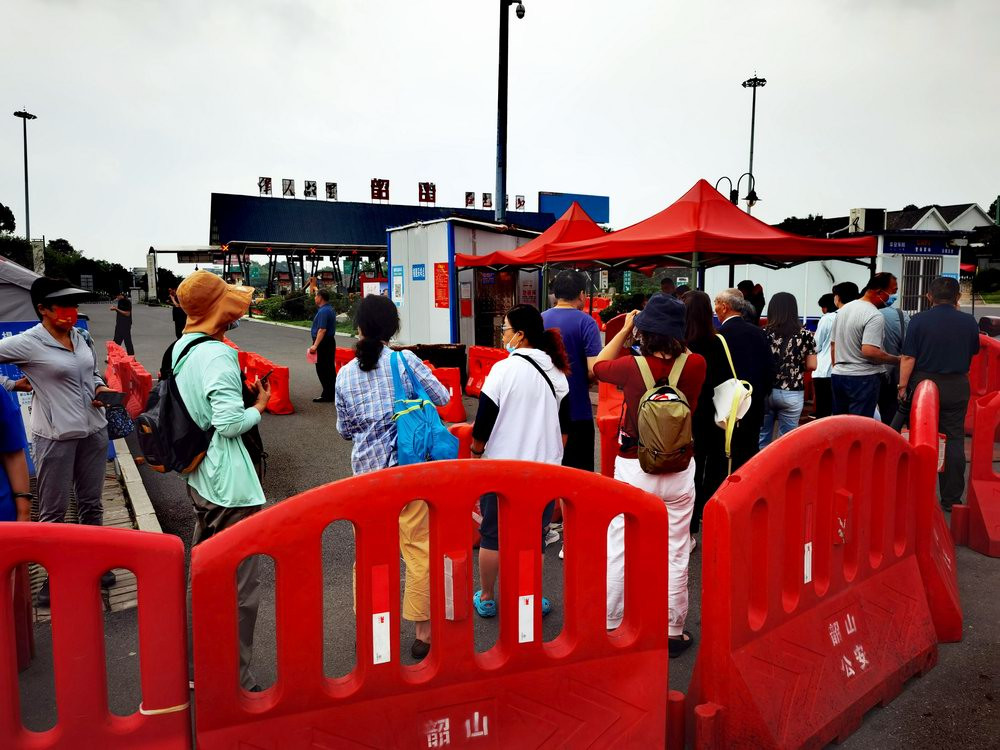 疫情期间,出了高速公路韶山服务区,就要进行核酸检测。