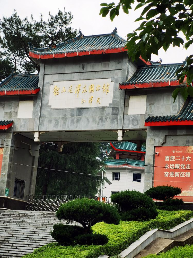 毛泽东主席的铜像矗立在韶山冲广场。这里背衬韶峰,是韶山冲的中心,距主席故居,毛氏宗祠、毛泽东纪念馆都很近。图为毛泽东纪念馆。