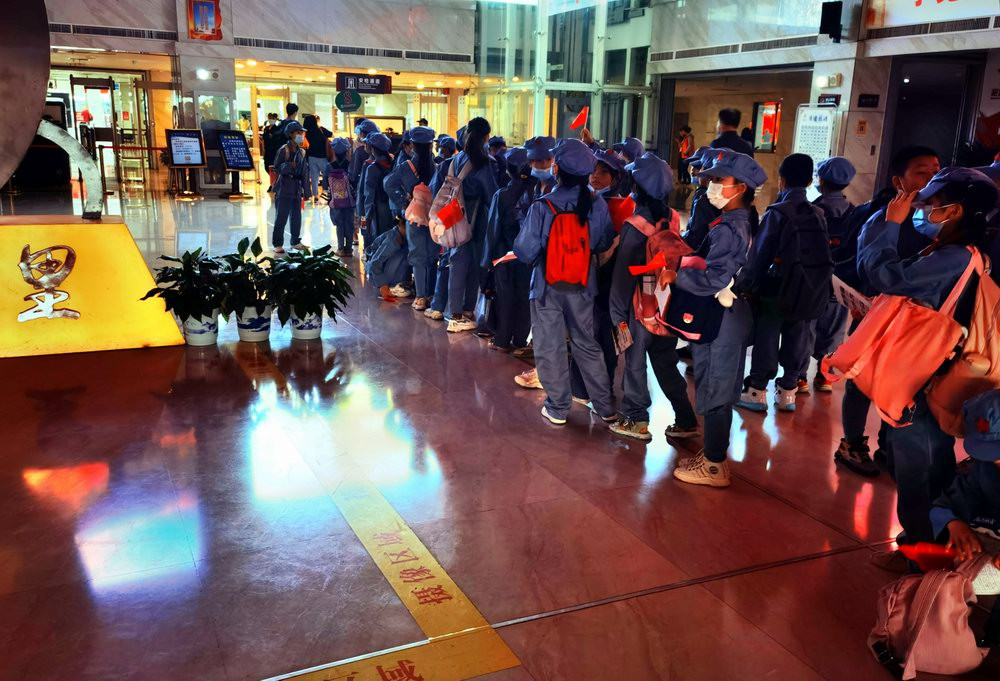 韶山是伟大领袖毛泽东的故乡,全国著名革命纪念地和国家重点风景名胜区。图为来韶山旅游的学生。