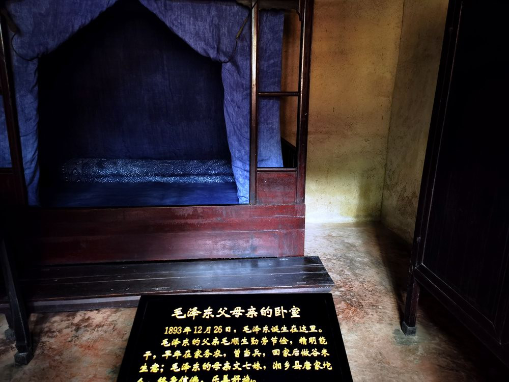 这是毛泽东父母的卧室。1893年12月6日,一代伟人毛泽东就诞生在这里,并在这里度过了他的幼年时代。