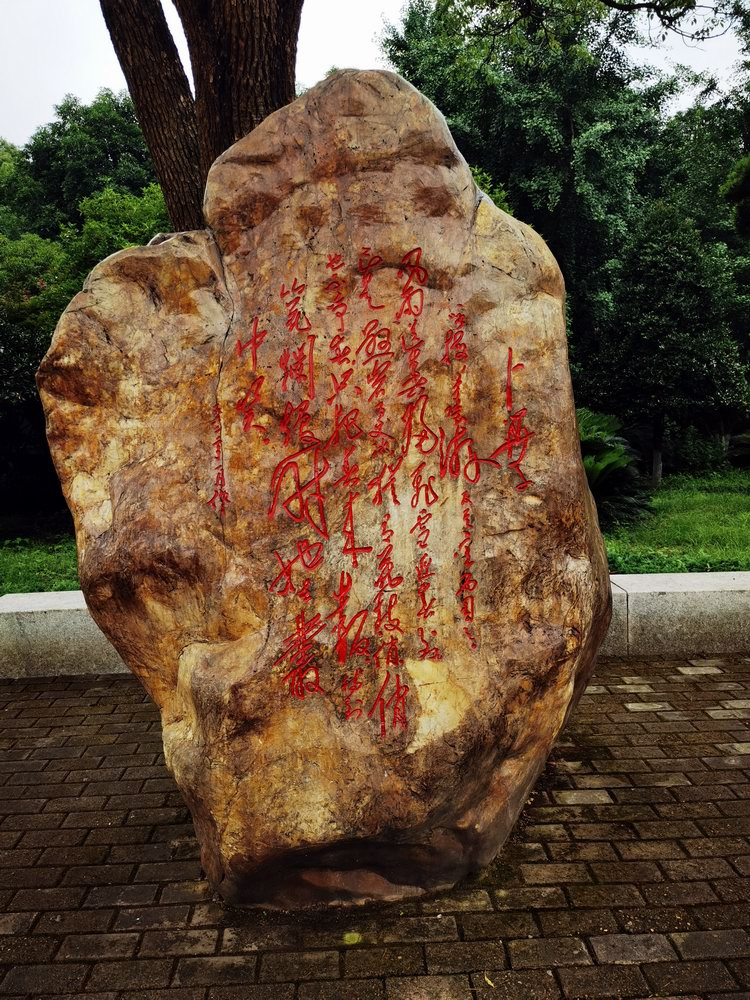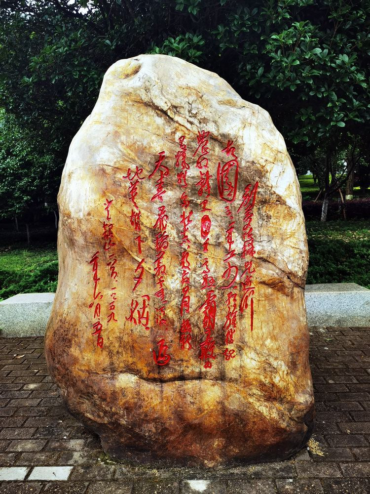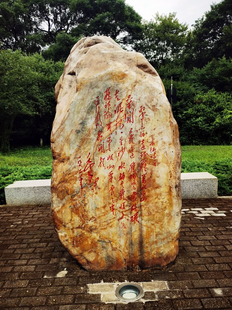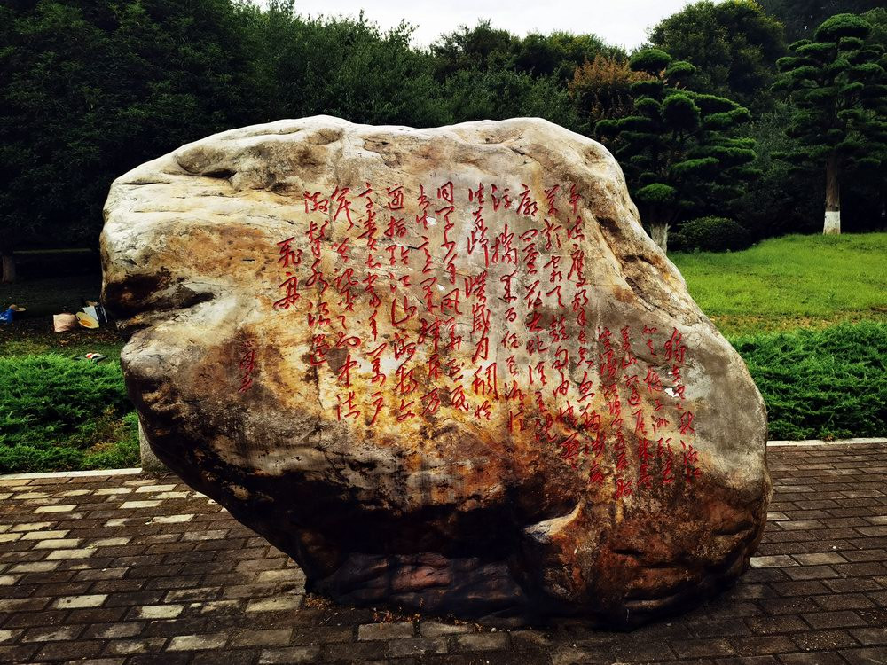 铜像广场周边花坛草地上立着多块巨大花岗岩石块,上面镌刻着毛泽东诗词。