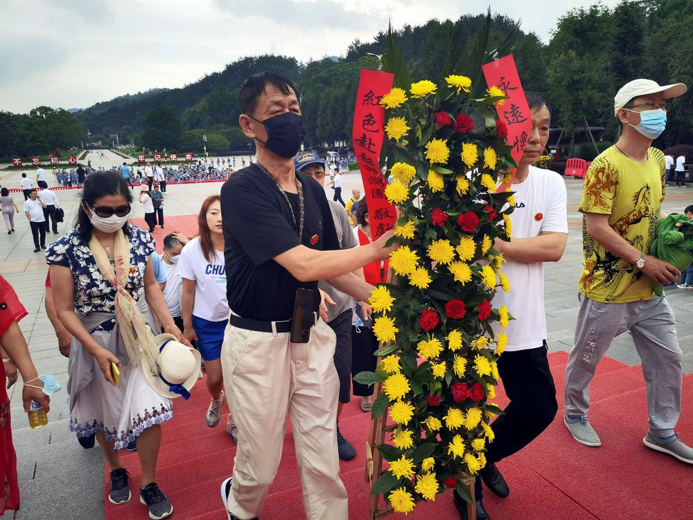 来毛主席铜像广场参观的游客,都会自发的向毛主席铜像敬献花篮。