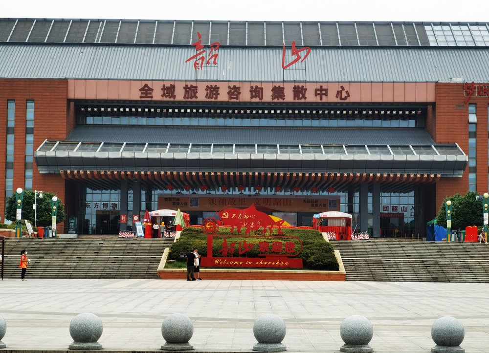 韶山旅游景区开发后,景区大门建到了毛泽东故居以外约4公里,靠韶山市一侧,并建设了大大的停车场。所有旅游大巴、私家车都必须在景区大门停车场停车。图为韶山旅游集散中心。