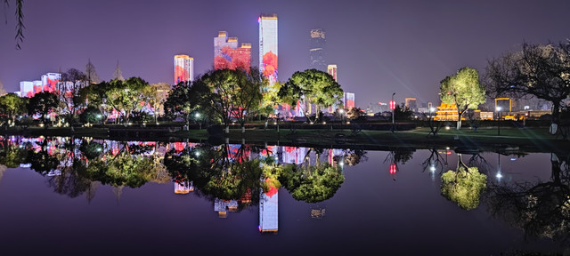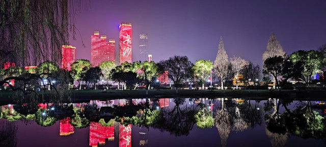夜游橘子洲头,景区扫码进入,不收费。看着湘江两岸的璀璨灯光,各色的灯光变换组成各种图案,湘江的夜景真是如梦似幻,令人陶醉。