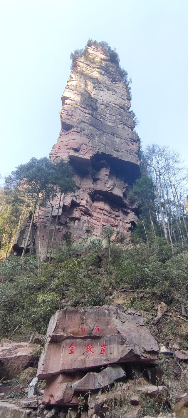 徒步金鞭溪途中,神鹰护鞭石碑。
