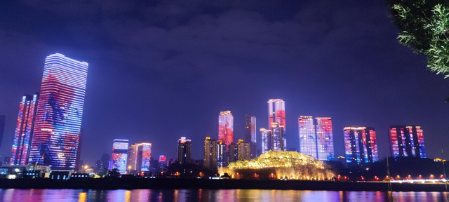 橘子洲头景区夜景(湘江岸边的灯光秀)