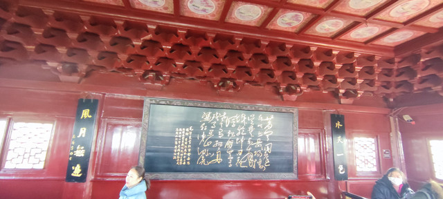 岳阳楼内部(一层),过节期间要排队很长时间才能进入楼内。