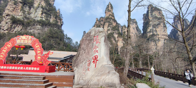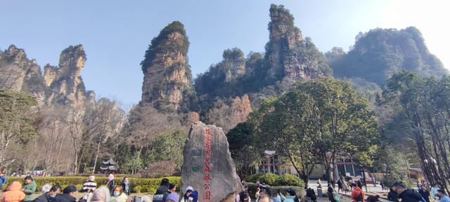 吴家峪门票站(标志门)附近交通、住宿和吃饭非常方便,游客大多选择从这里进入景区。从大门坐区间车到各个景点游览,区间车乘坐不限次数,基本上坐满就发车。黄石寨、袁家界、天子山景区在山顶,黄石寨、天子山景区可以坐缆车往返;袁家界景区可以坐百龙天梯或者缆车往返。张家界国家森林公园面积非常大,景点分散且距离遥远,徒步游览费时费力,最好乘坐区间车往返各个景点,旅游旺季排队乘车人很多,可能要等待一点时间,好在区间车很多,也不会耽误太长时间。