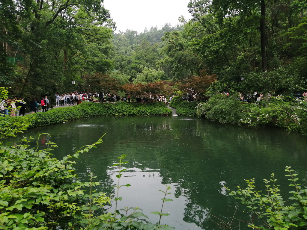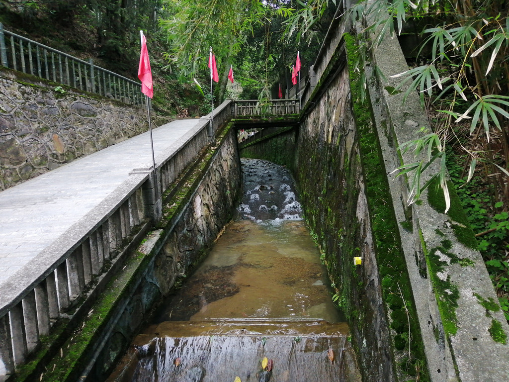 从书院西门出来。是上下山的景区公交车下客点的停车场。往上走,小水潭挺优美。