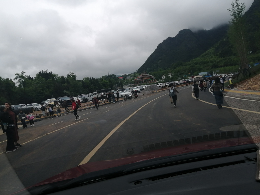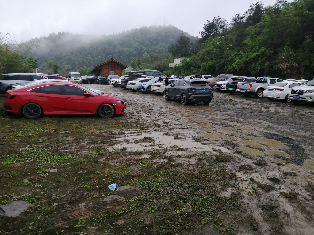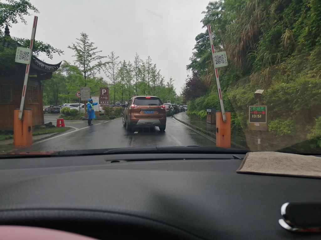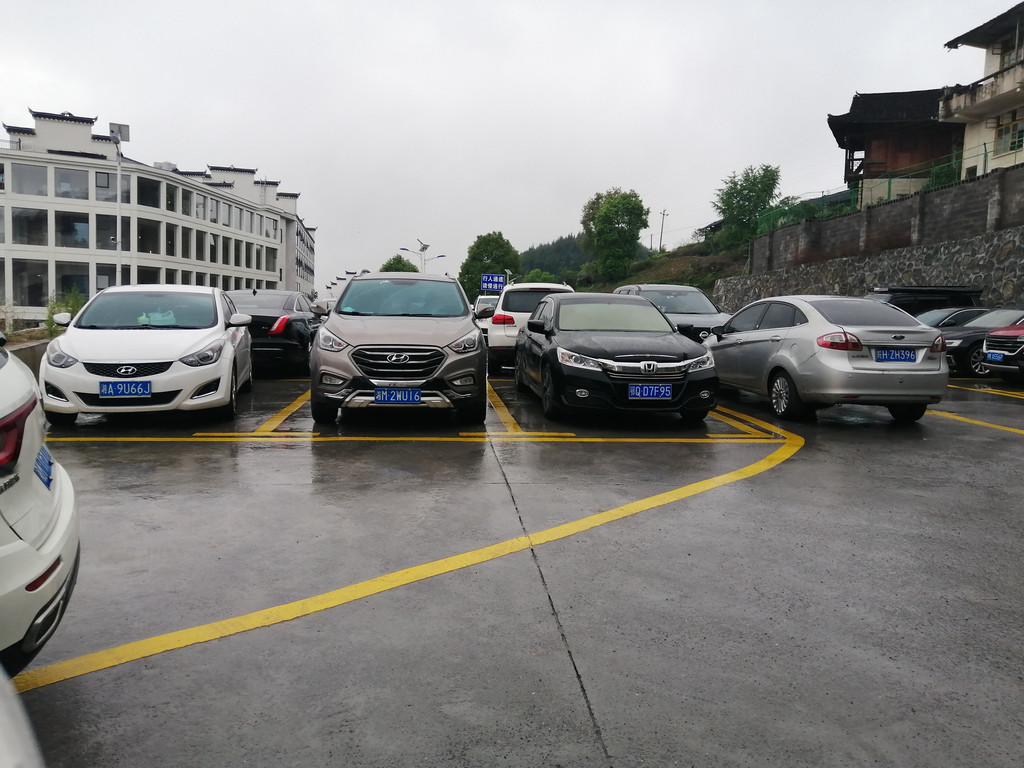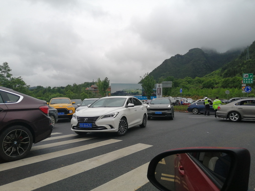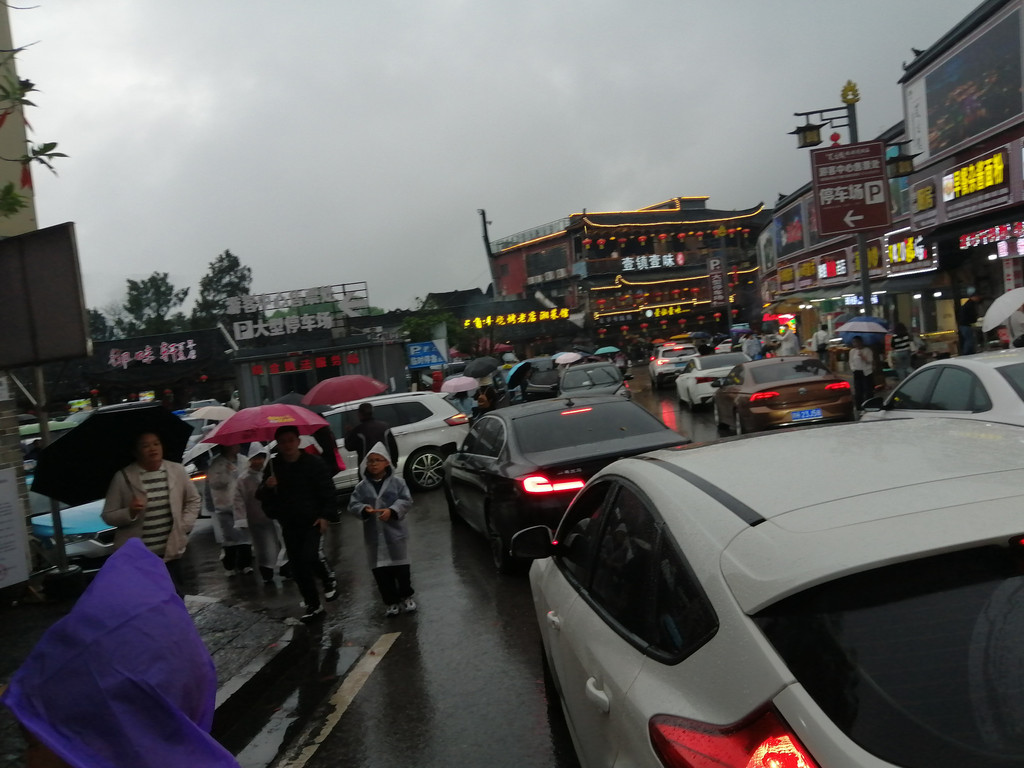 缓行了半个多小时,离开景区只有几百米了。这时看见旁边有停车场空着车位,赶紧进去。进去后,下面停满了,只能开到上面半坡上。后来出去时要在坡道上先把车倒出来,再到上面狭窄的地方掉头,绝对考验车技。难度不亚于2019年春节自驾去广东,在珠海情侣路珠海渔女旁边的停车场,先上陡坡再在上面掉头。