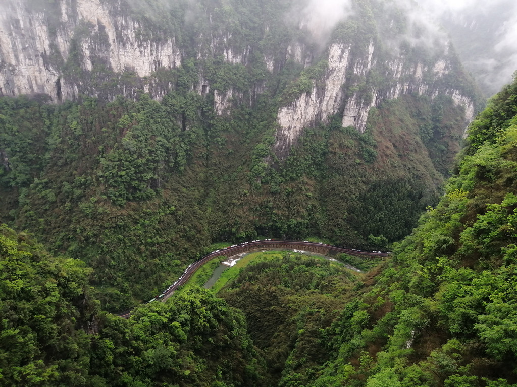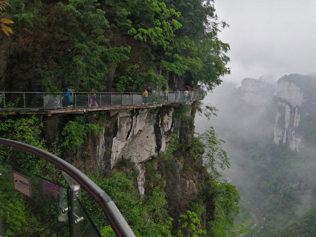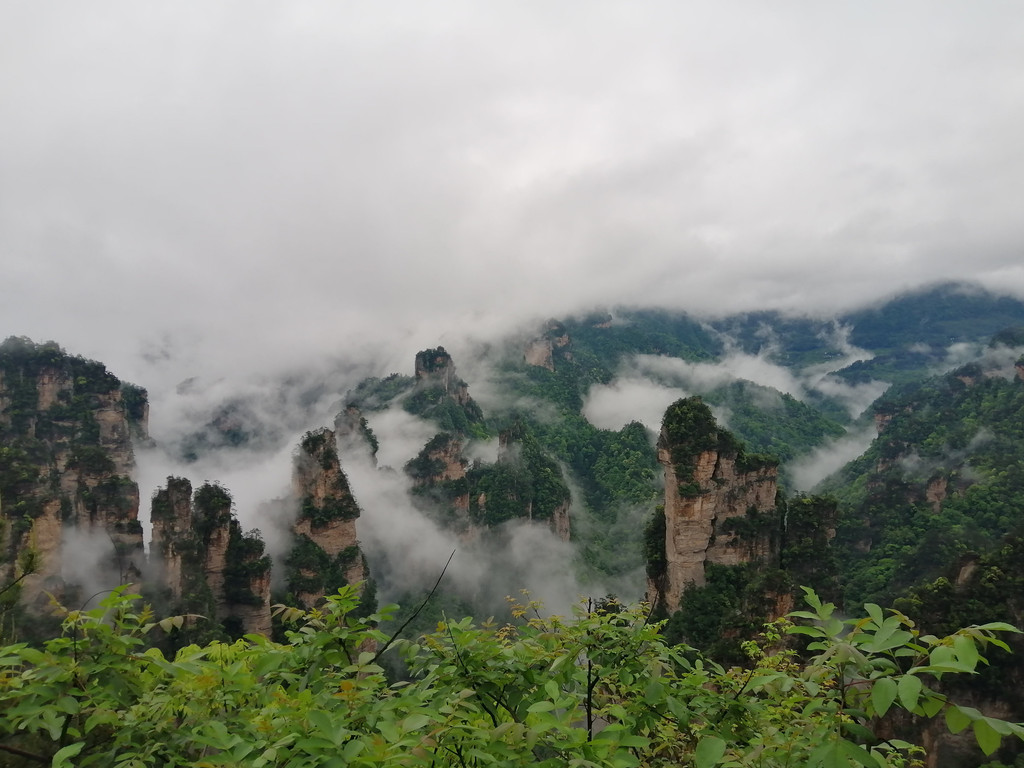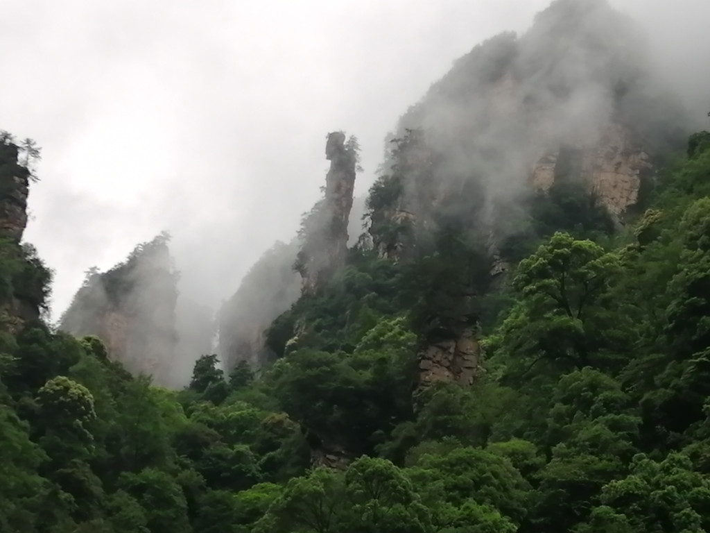 这会起雾了。没办法张家界这里就是这种气候。十几年前来,第一天在黄石寨就是上去后啥也看不到,总算第二天在袁家界这里天气好了。