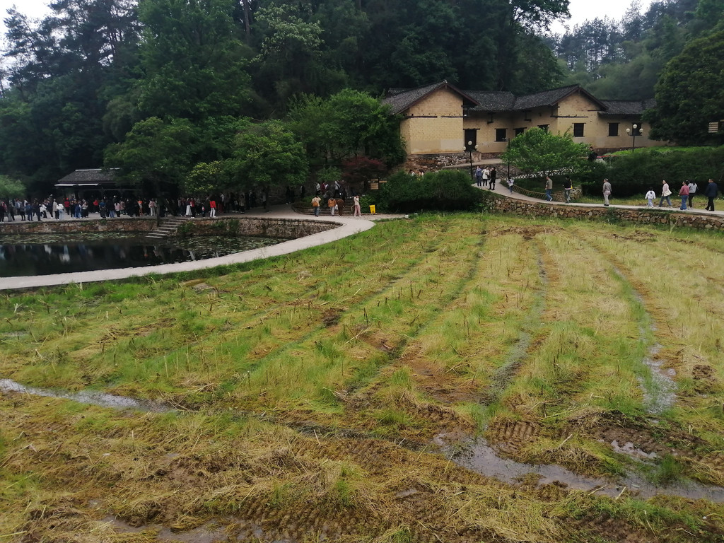 出来就看到两片水田。毛主席父母的墓就在旁边小山上。