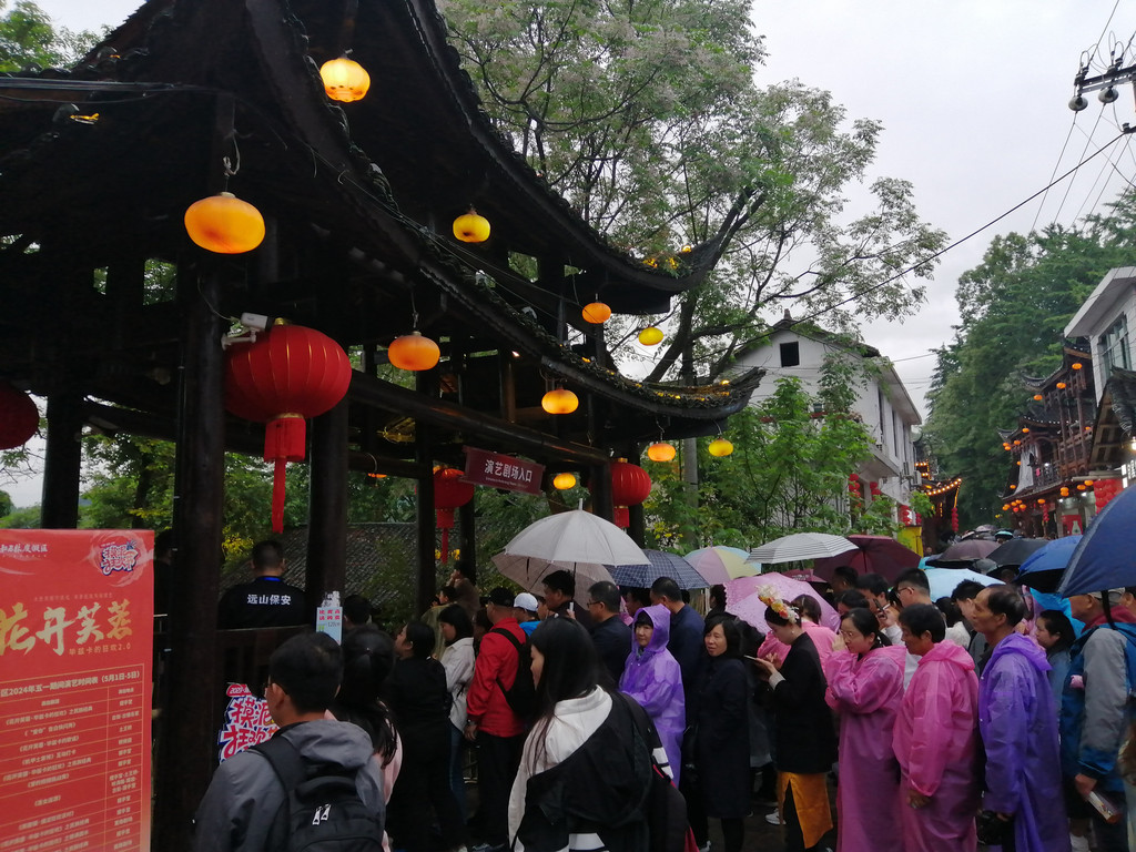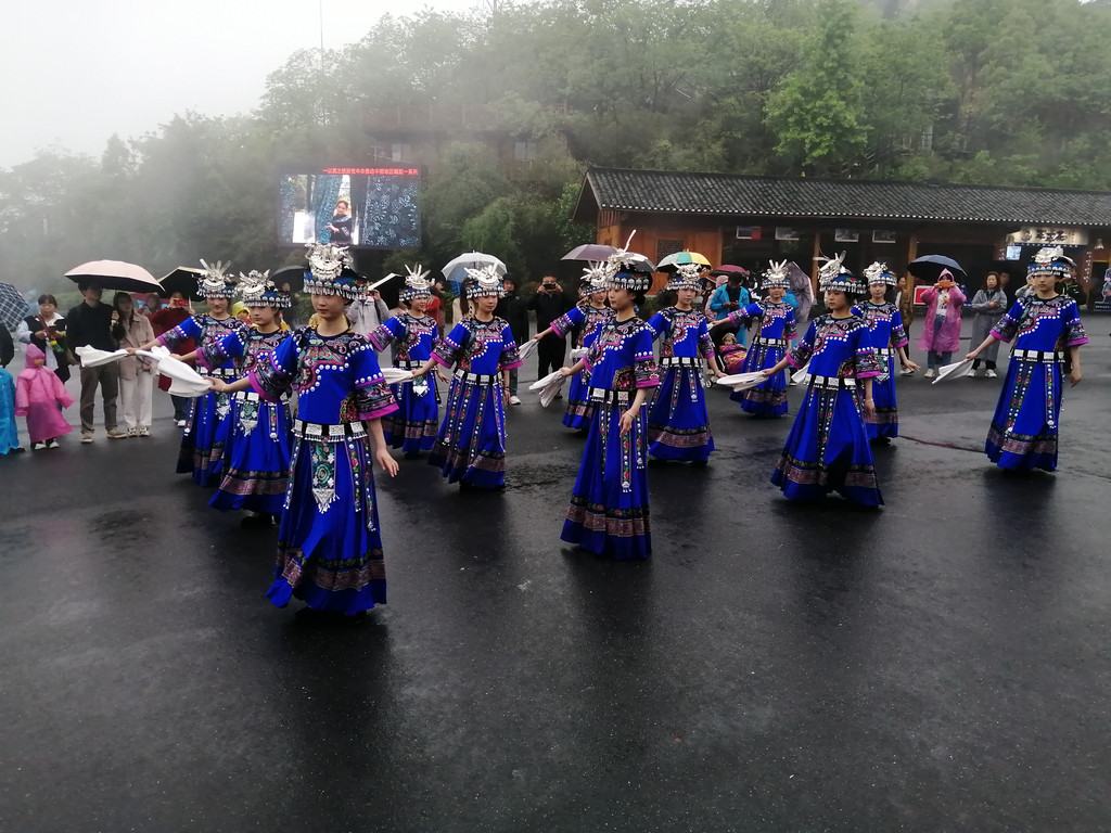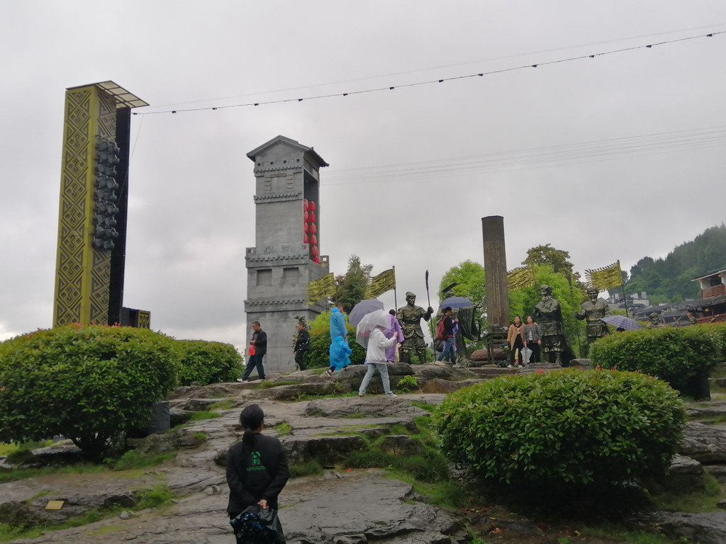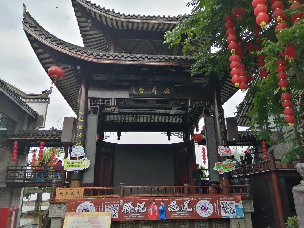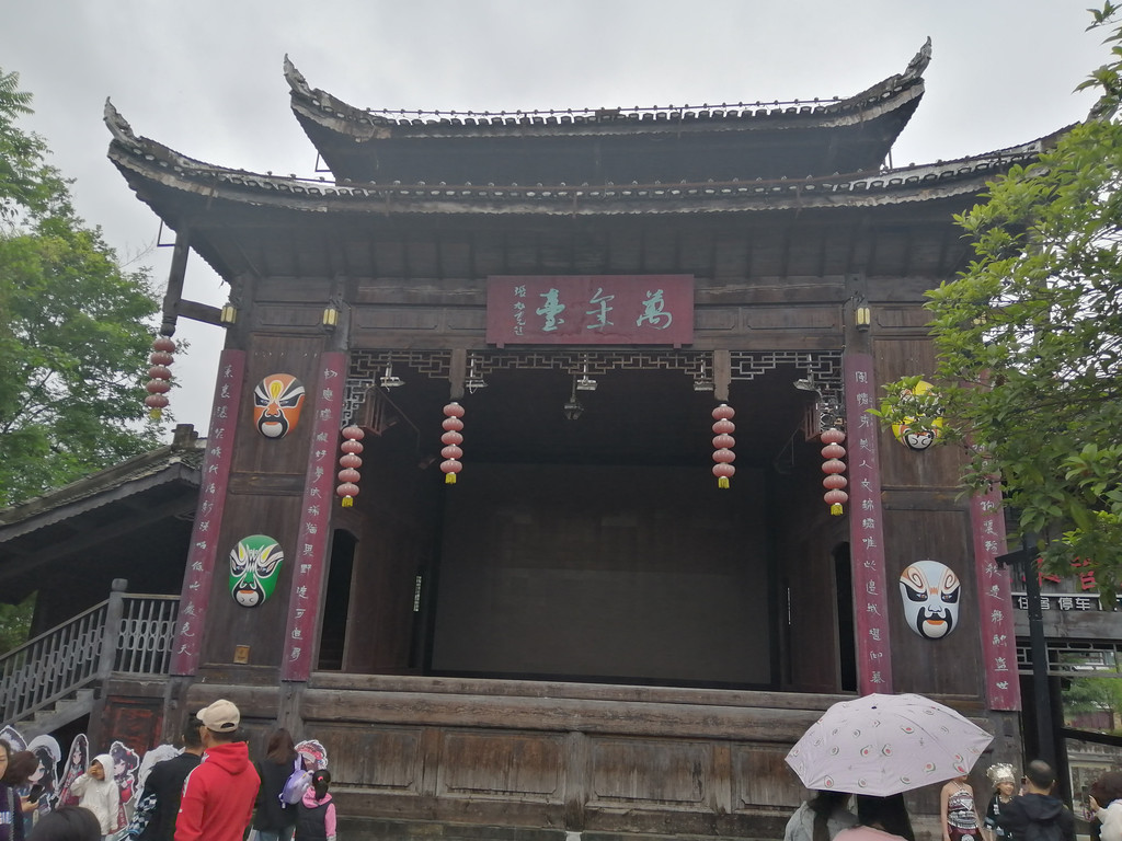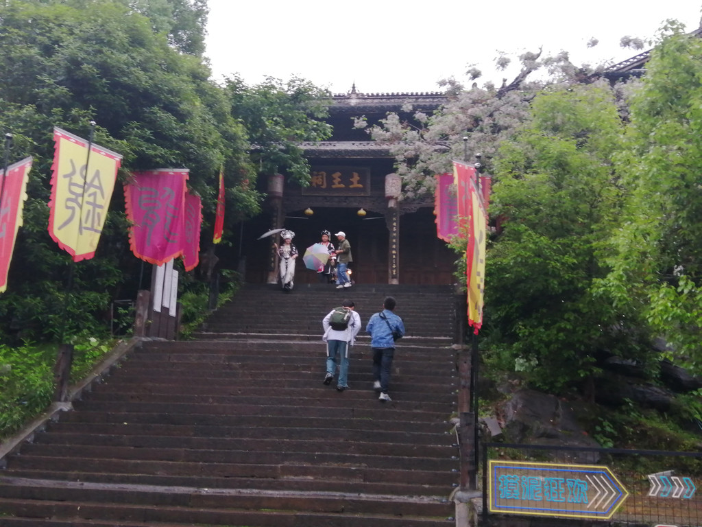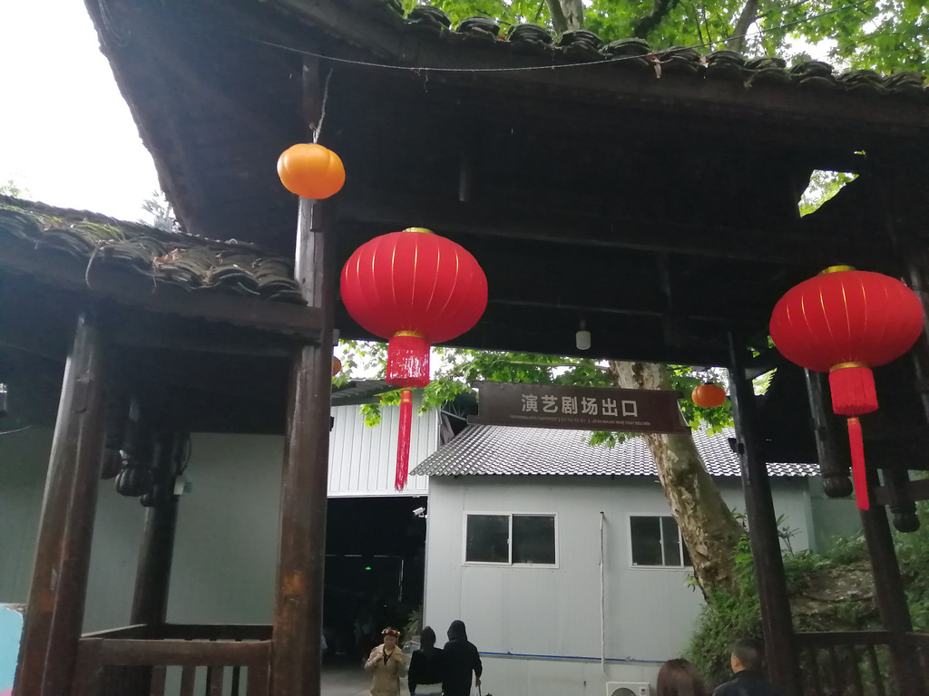 土王祠下面是个广场。今天下着小雨,演出改到前面瀑布观景台旁边的室内剧场。