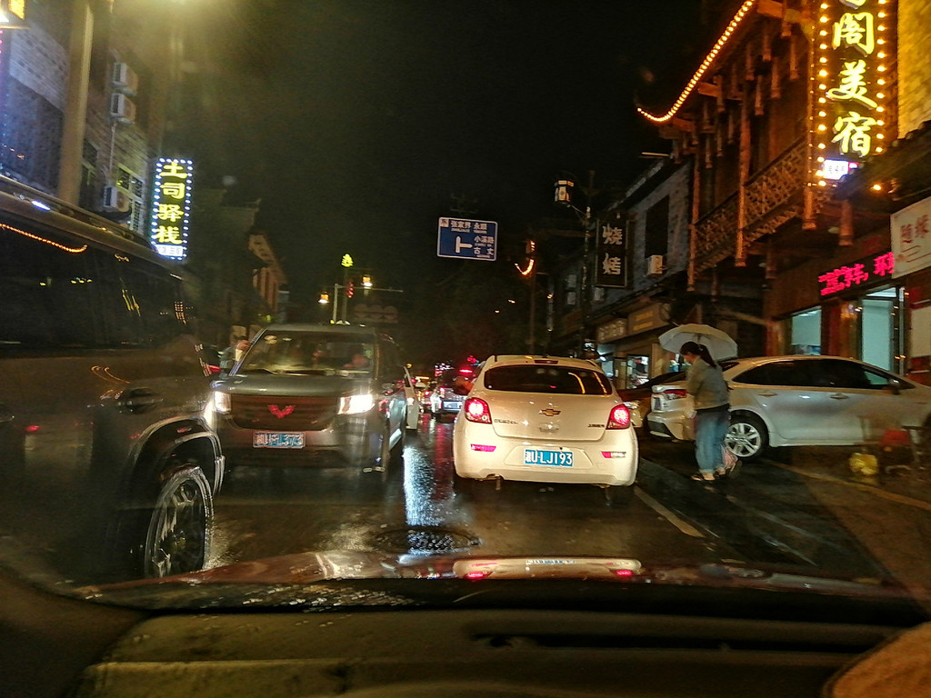 吃完晚饭停车场出来七点五十了,出镇区挺通畅。进来方向还是很拥堵。感觉晚上来这里的人不见少,反而更多了。