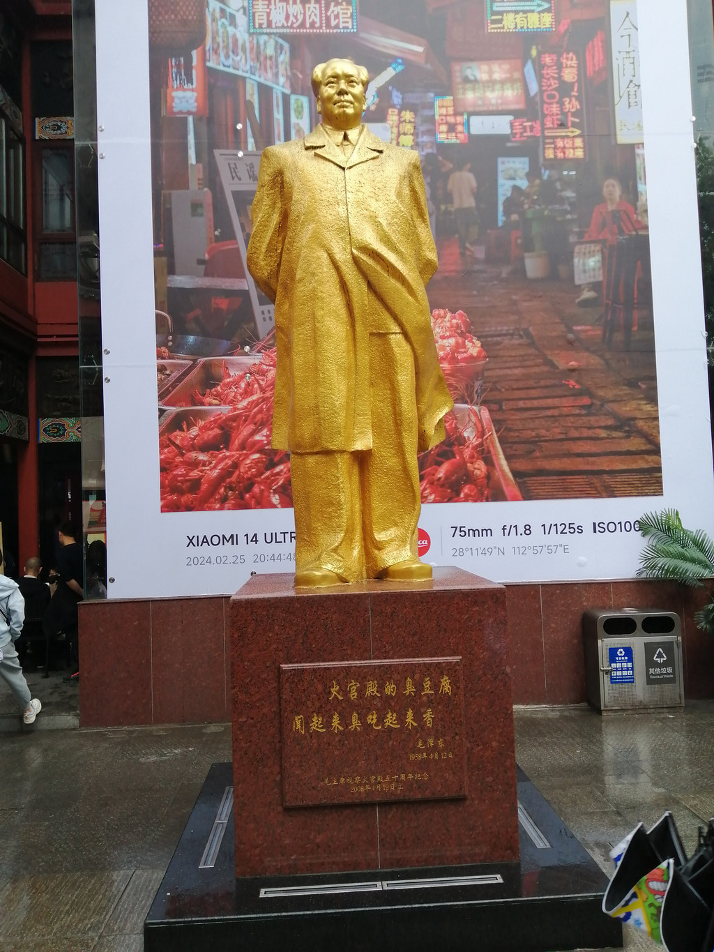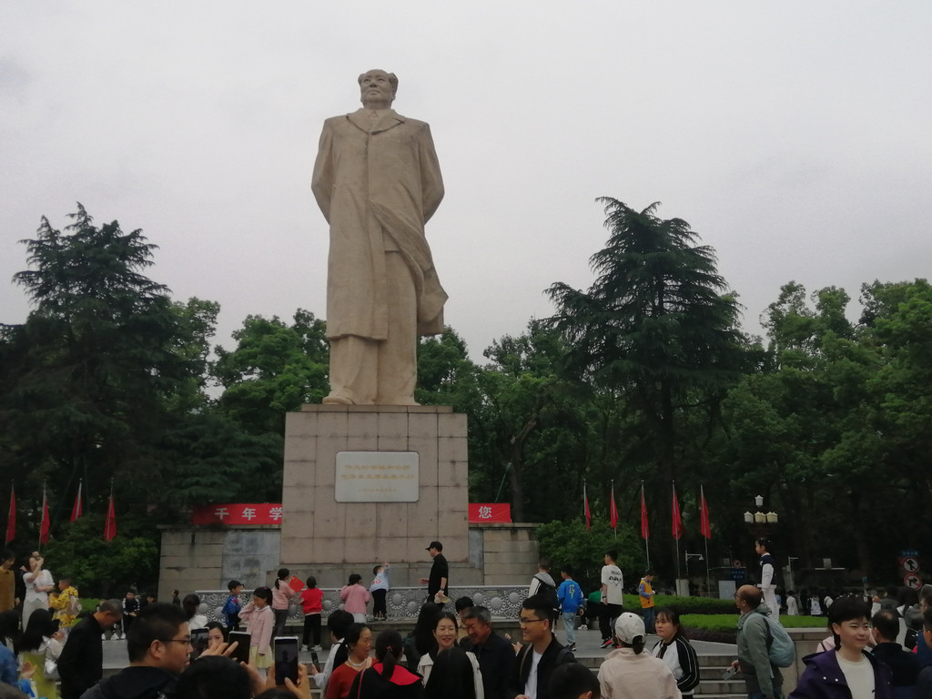 自卑亭过去就是东方红广场。这里有一尊伟人的站立雕塑。我们顺着广场右侧的小路上去岳麓书院。