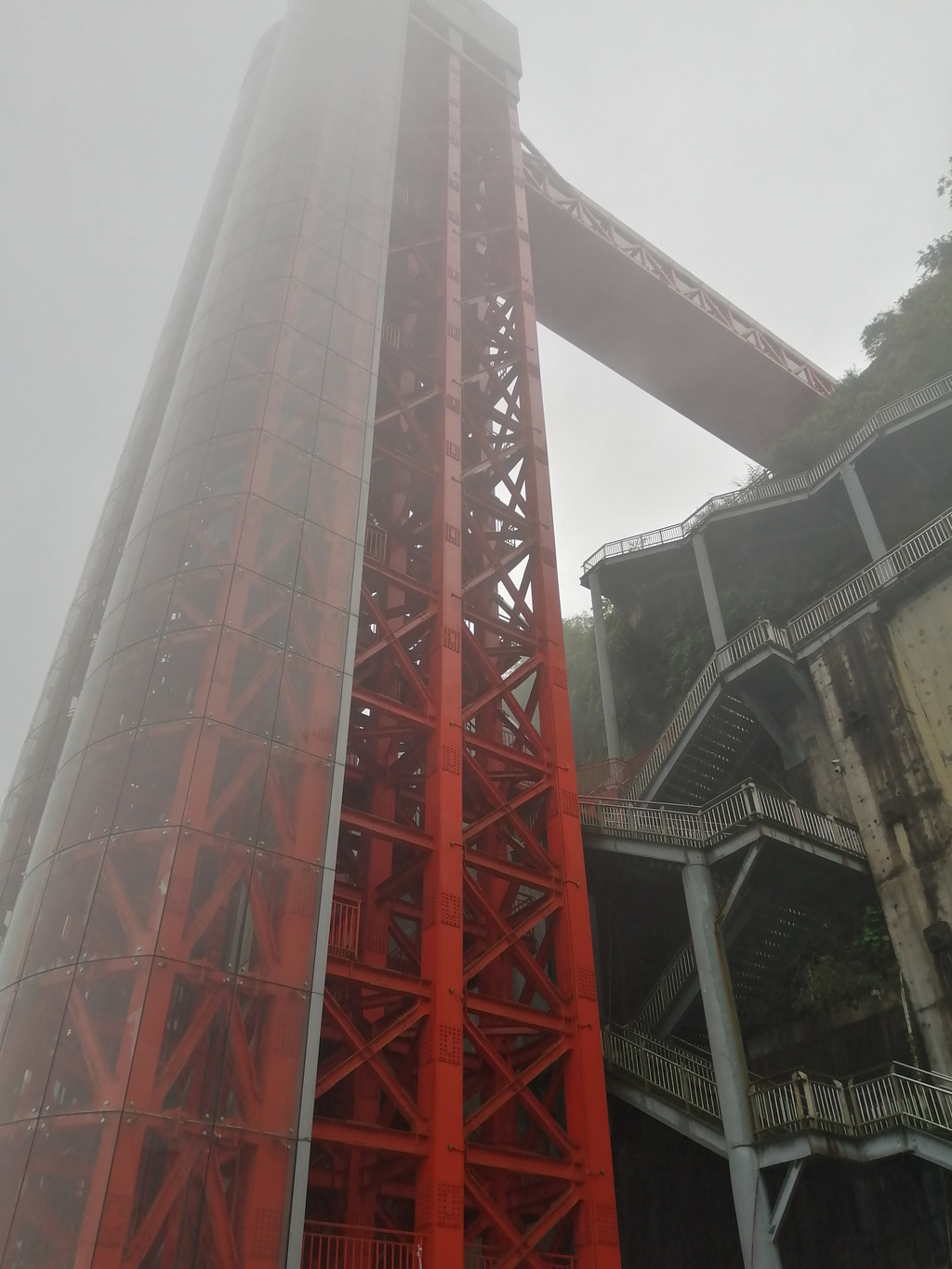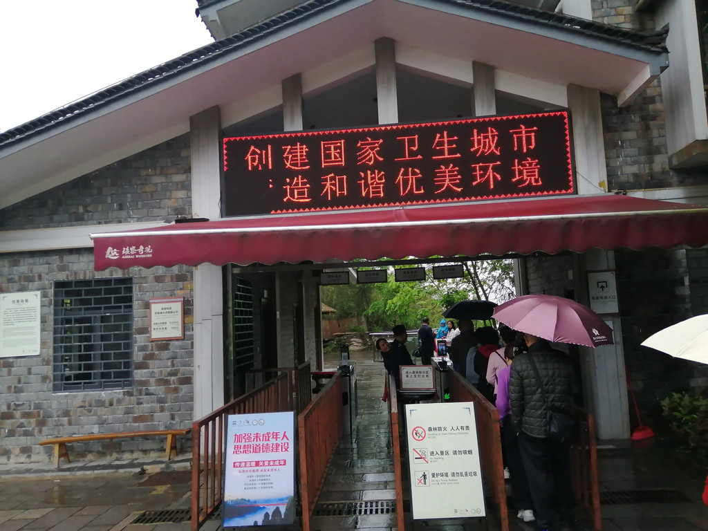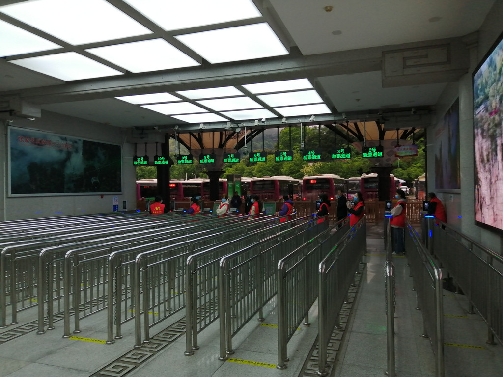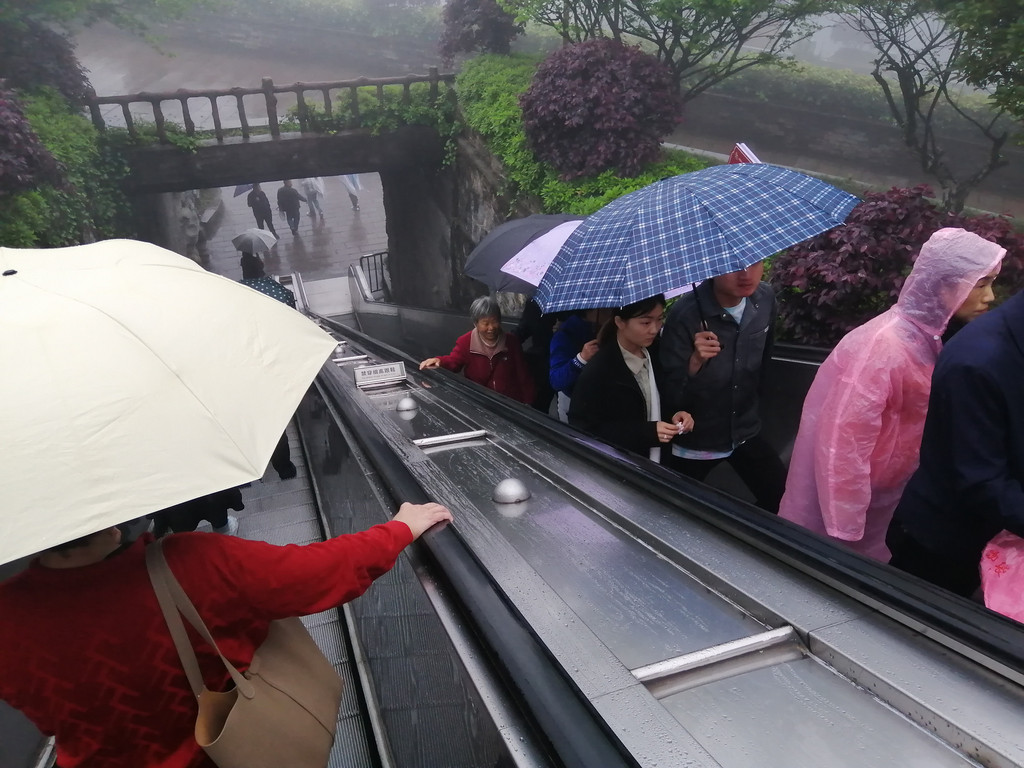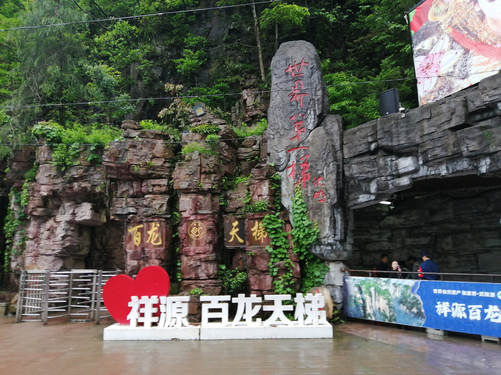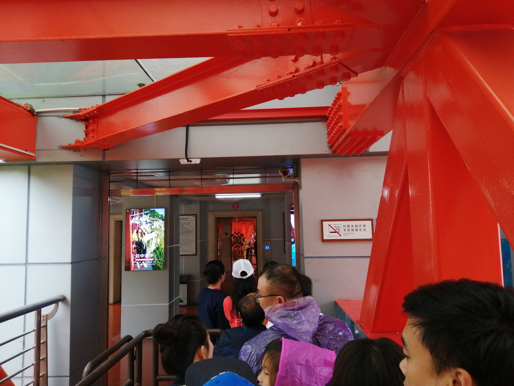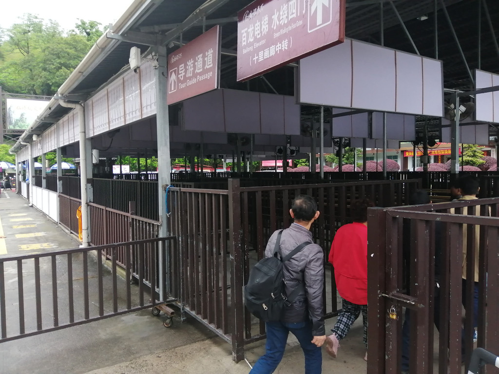 百龙天梯到了就能乘,还因为人太少,等了几分钟凑满人才进电梯。电梯口的小美女工作人员说:前两天客流量最高峰时,要排队几个小时。