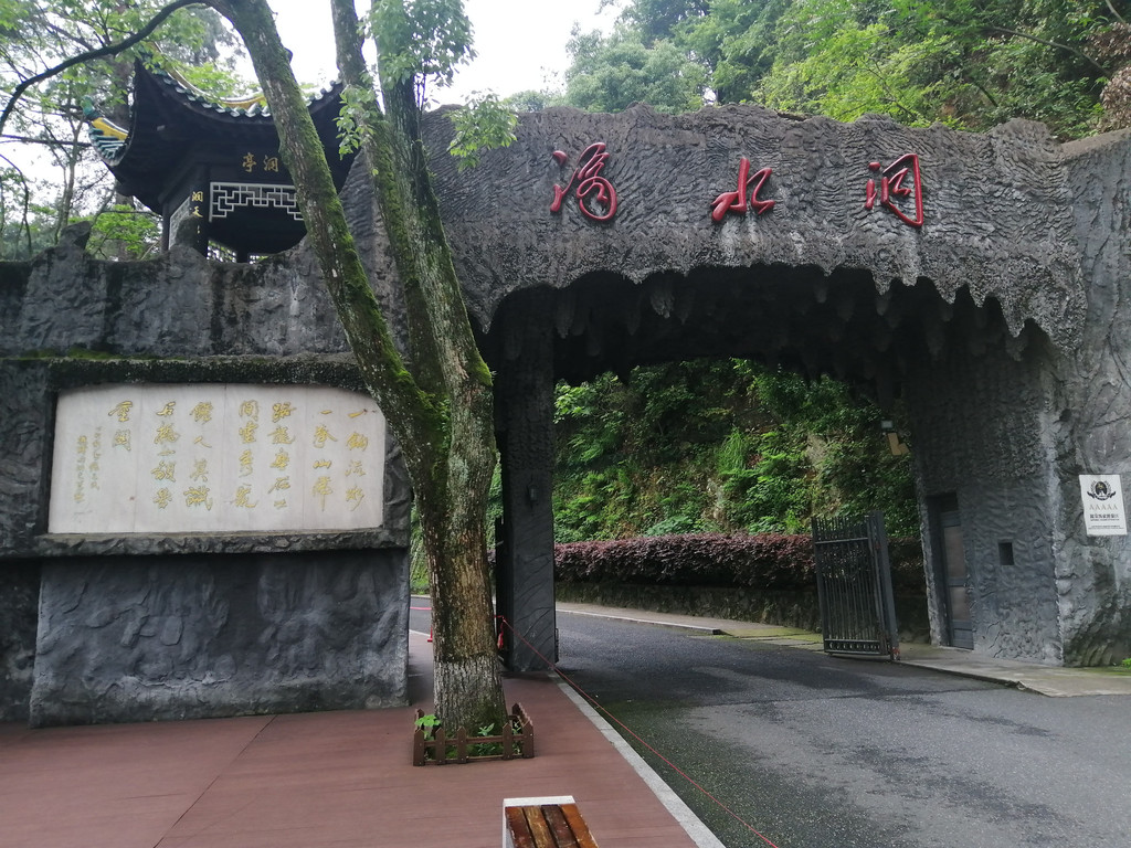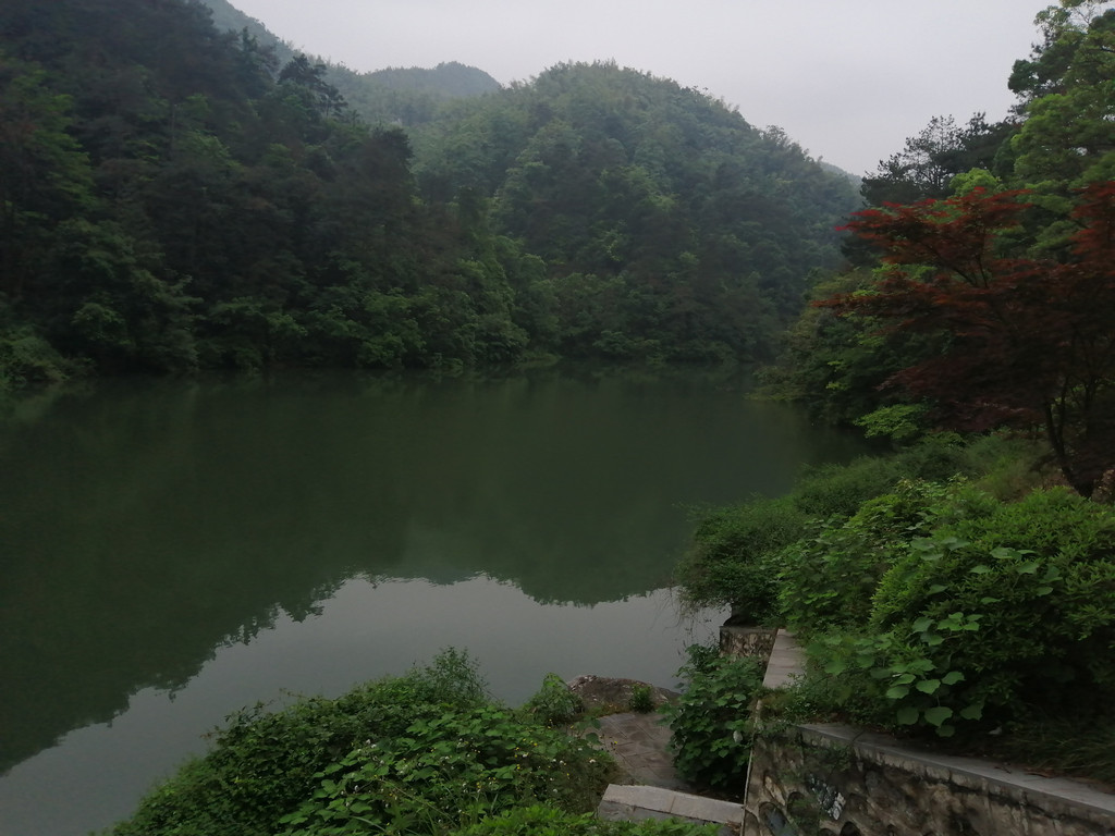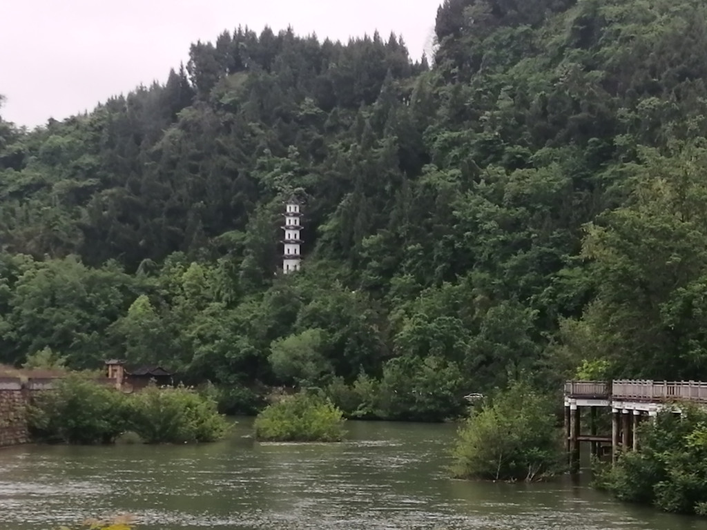 过了滴水洞石门楼。这里是毛主席游泳过的地方。